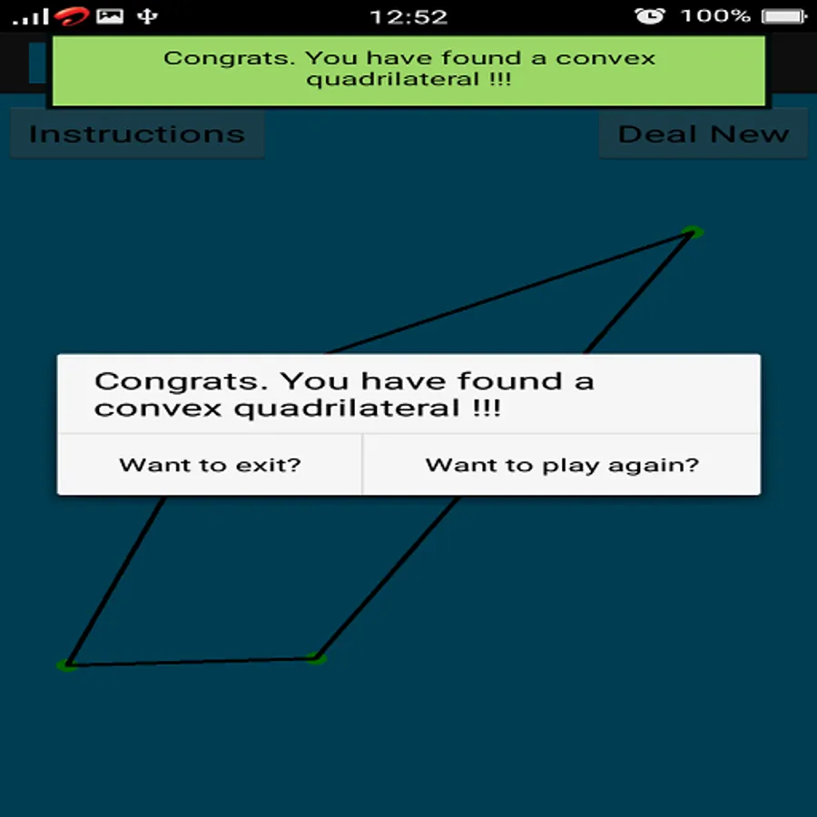 This simple game deals with only 5 dots i.e. the case for a convex quadrilateral.