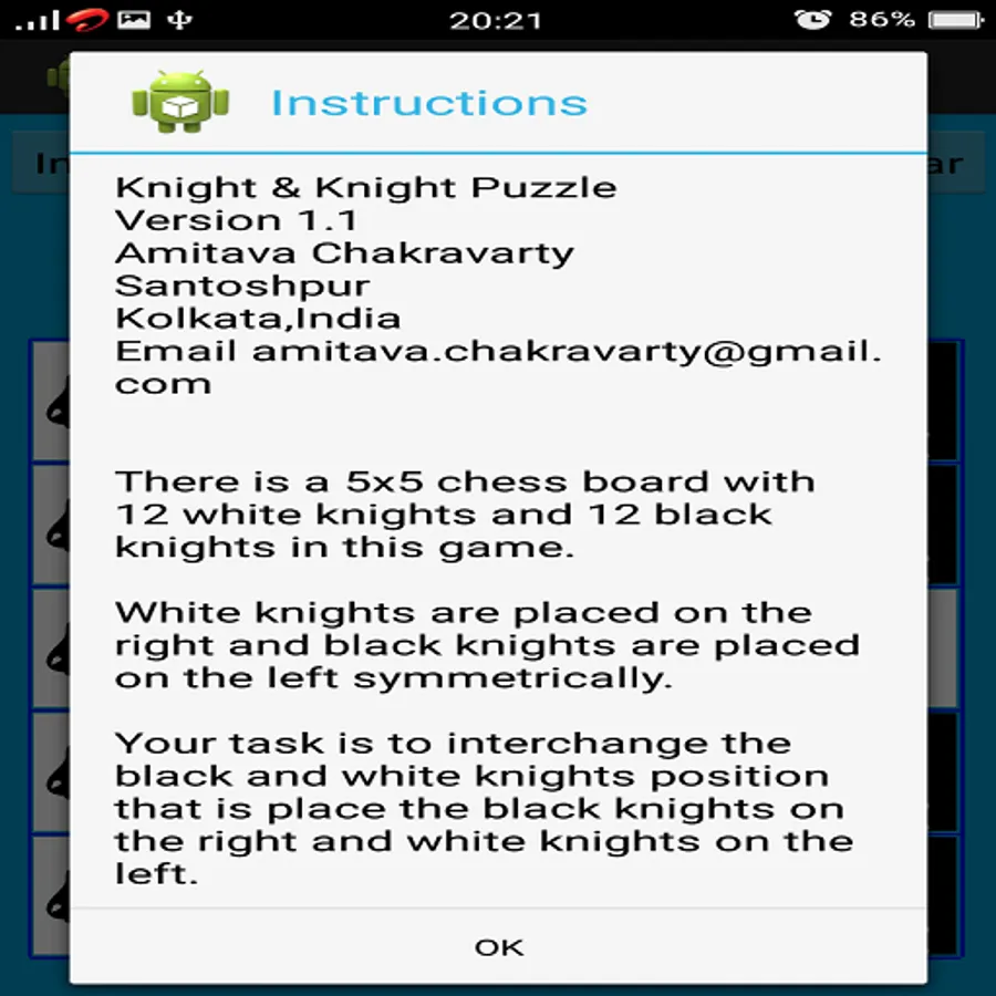 There is a 5x5 chess board with 12 white knights and 12 black knights in this game.White knights are placed on the right and black knights are placed on the left symmetrically.