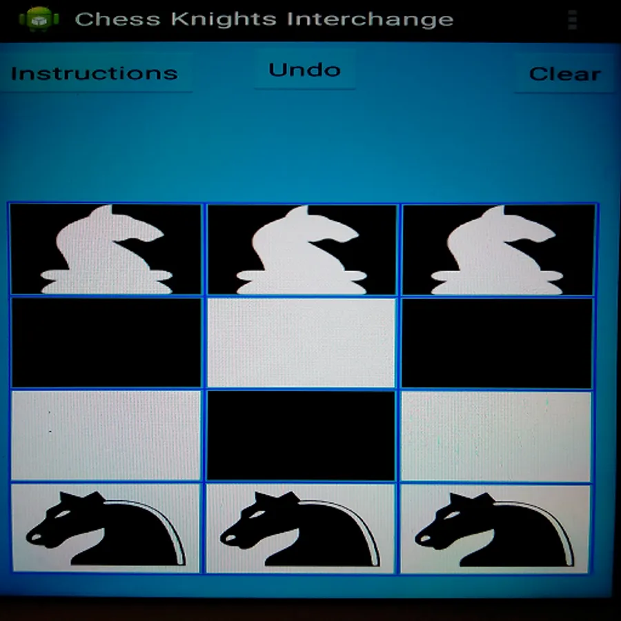 There is a 3x4 chess board with 3 white knights and 3 black knights in this game.