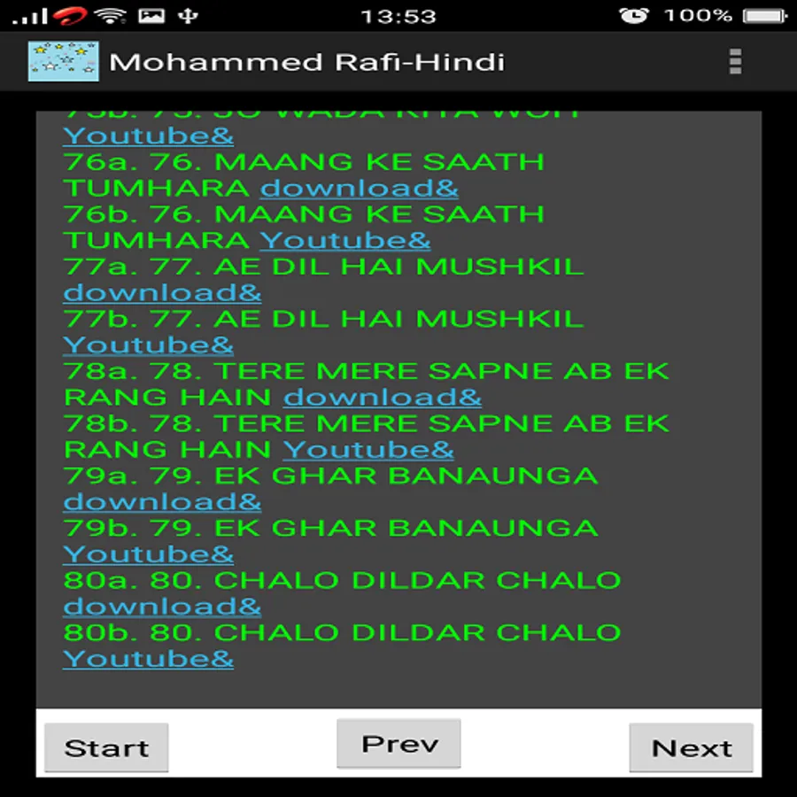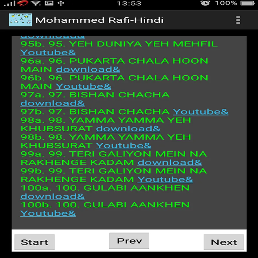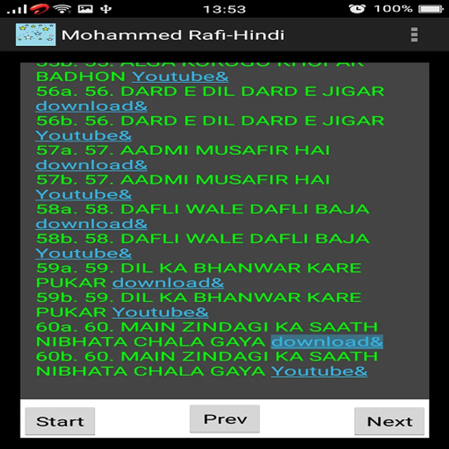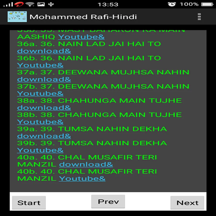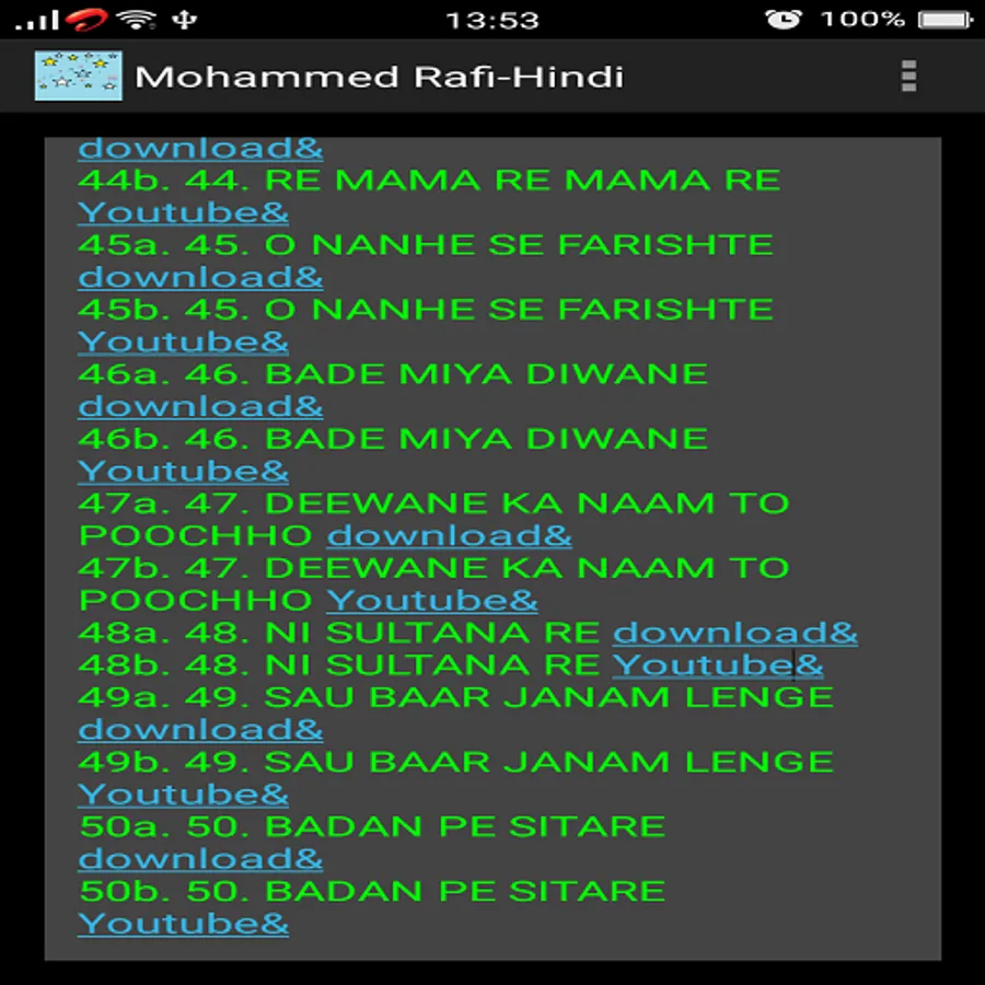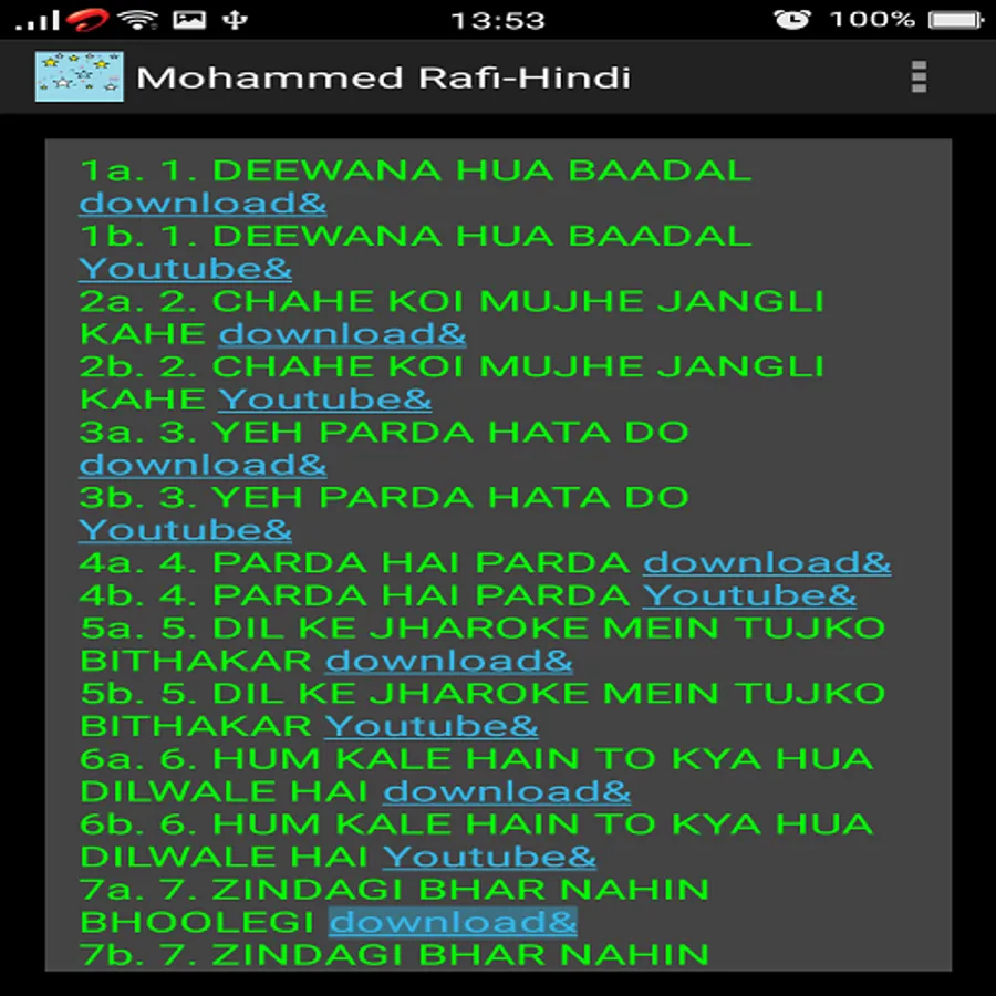 This app is a collection of around 100 memorable Hindi songs of Mohammed Rafi.
