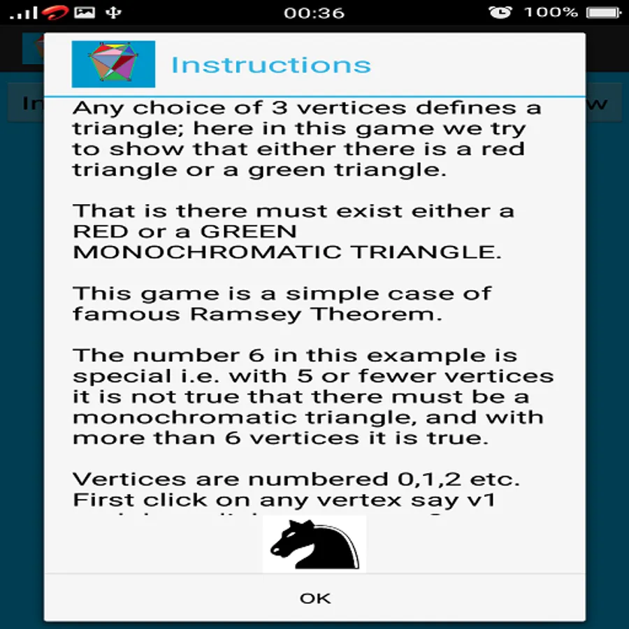 Any choice of 3 vertices defines a triangle; here, in this game we try to show that either there is a red triangle