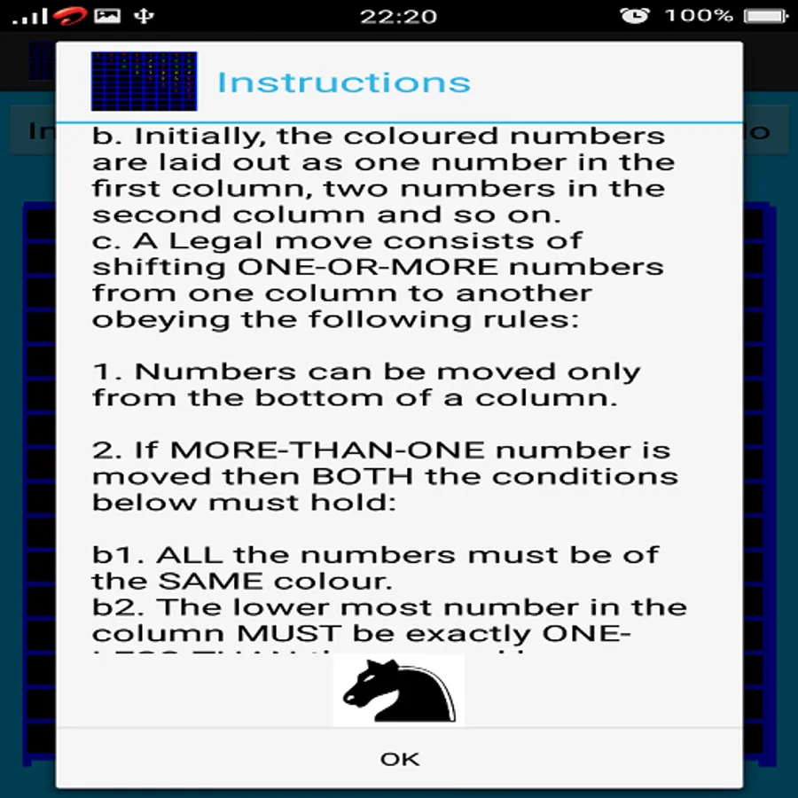 a. The game consists of a Board having EIGHT columns and FOUR sets (of colours RED,GREEN,YELLOW and MAGENTA) digits (from 1 to 9).