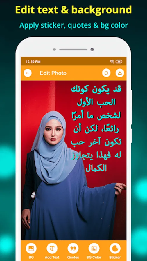 • Select HD Background and also select color for your choice and write Arabic text on photo.