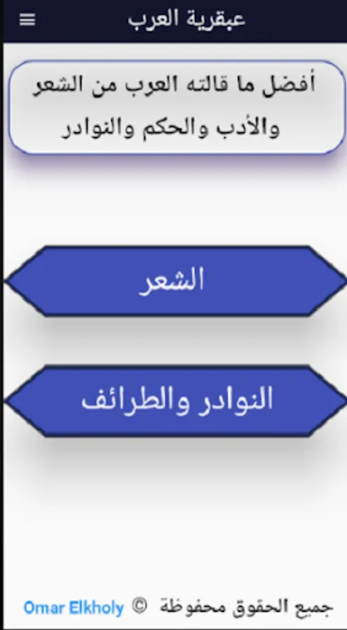 An application that contains the best of what the Arabs said of poetry, literature, governance and anecdotes in a simple way that makes you listen to the language of the Arabs, the genius in art and the beautiful anecdotes