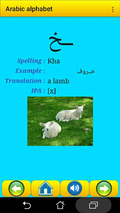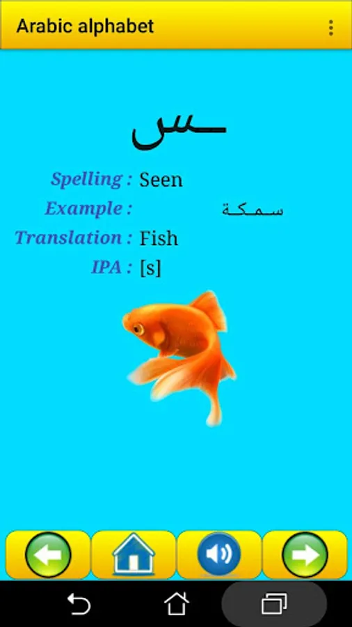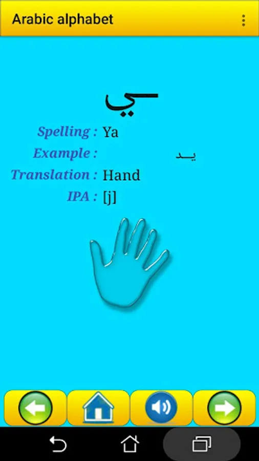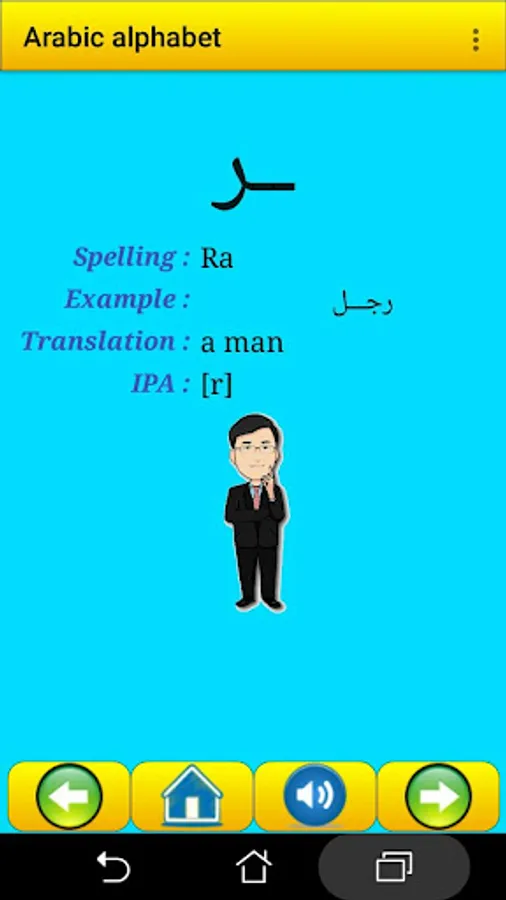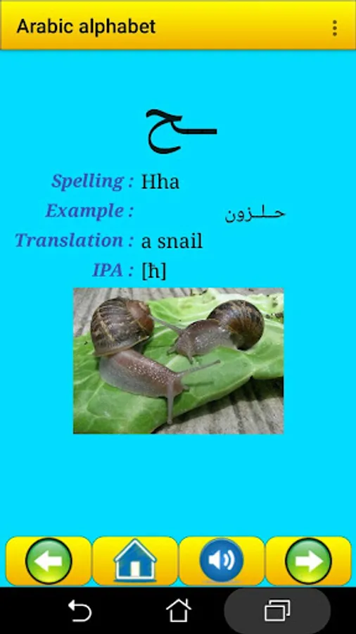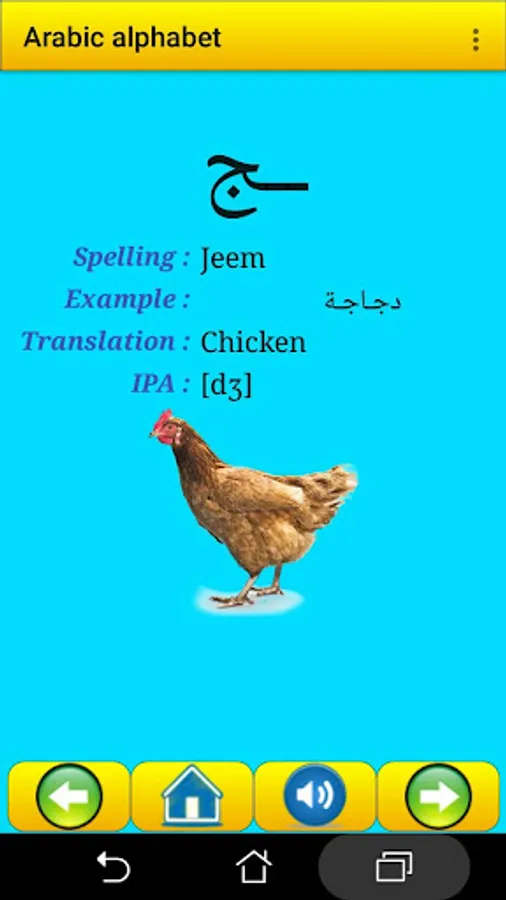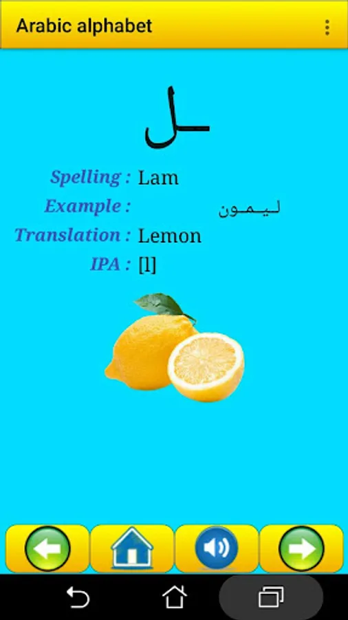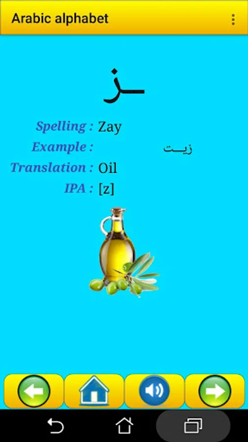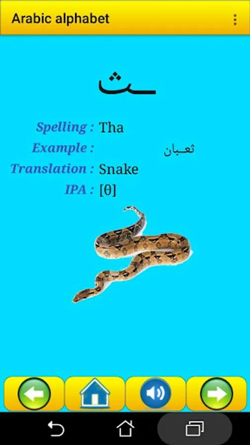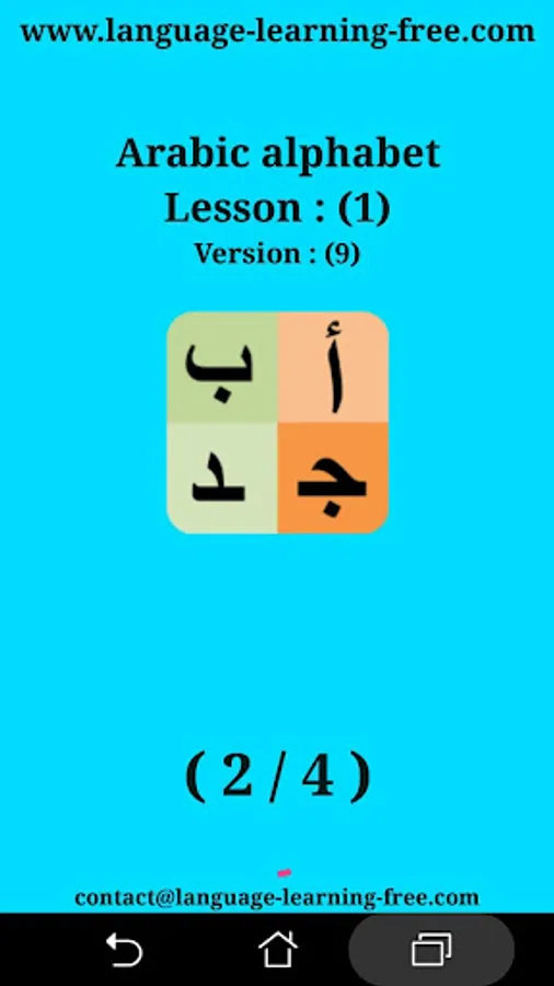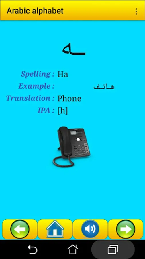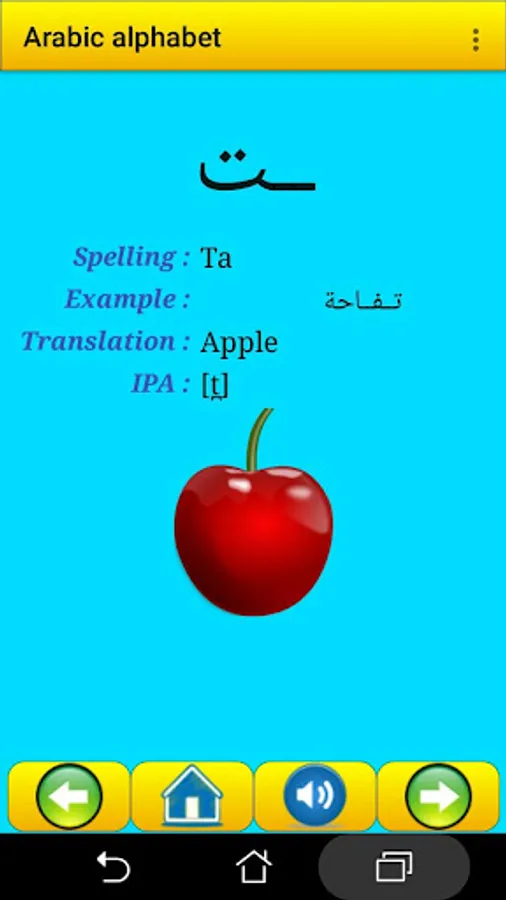 This app contain all Arabic alphabet , exactly 28 letter , it help strangers students in universities of Arabic world for learning and speaking the alphabet and the pronunciation , this course are free and full , no feature are hidden ,The course gives basic spoken and written knowledge of the Arabic language .