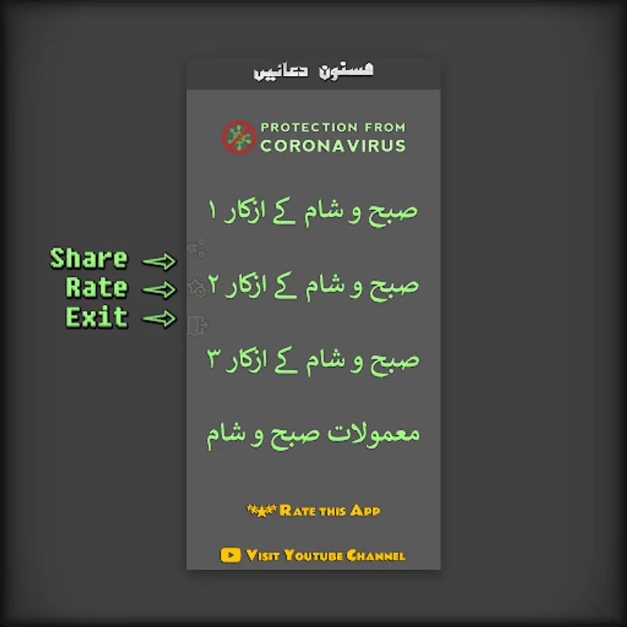 “Duas can change the life”, the same ideology obligatory the developers to compile which was scattered at numerous pages. Morning and evening Subah Sham Ke Azkar-Masnoon Azkar supplications are fit to spend a good Day.