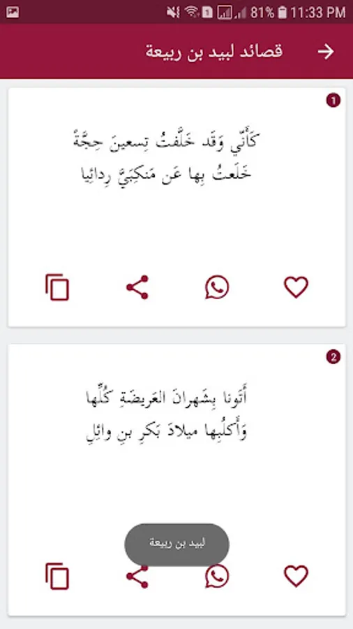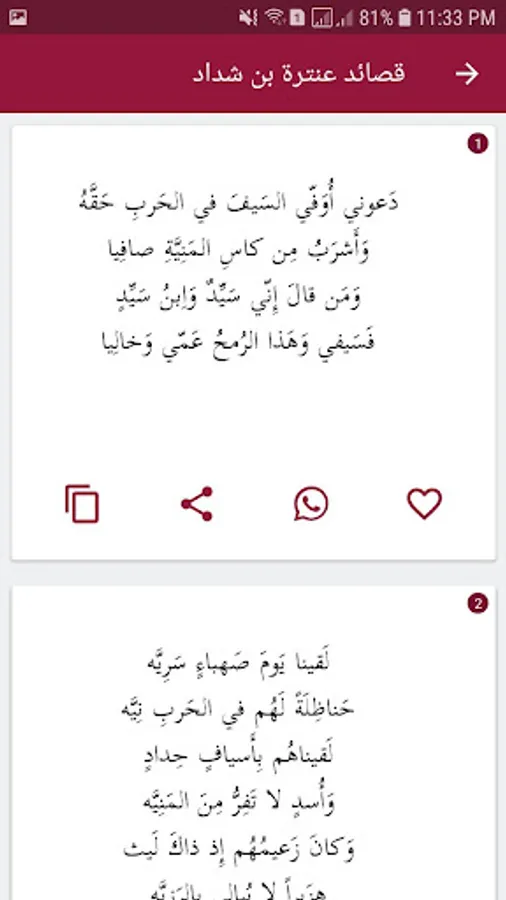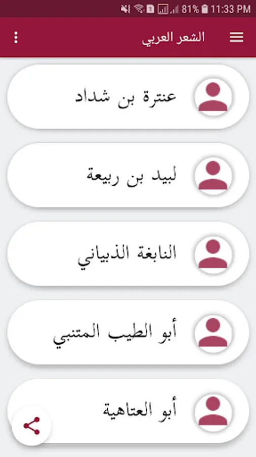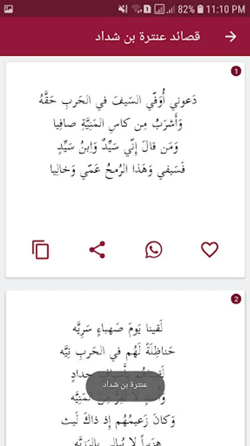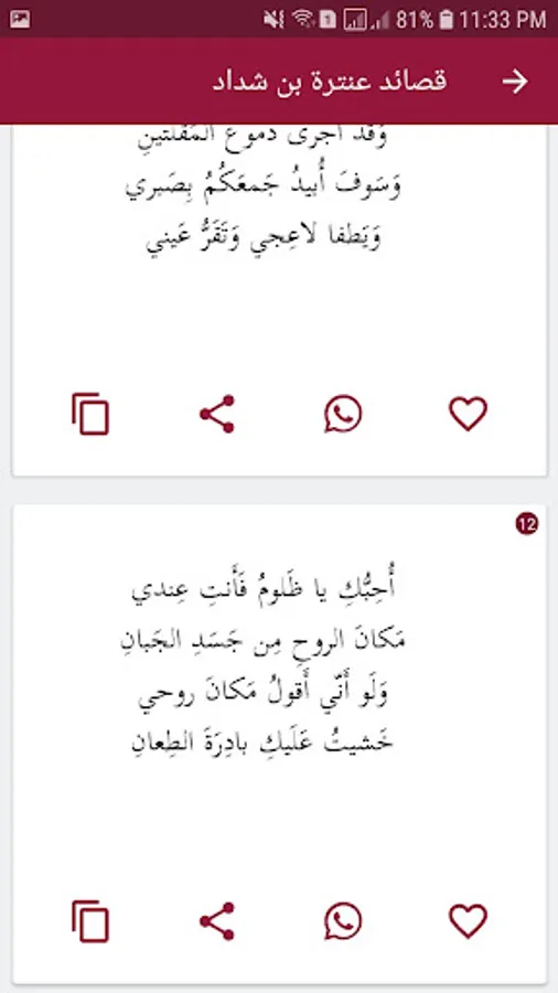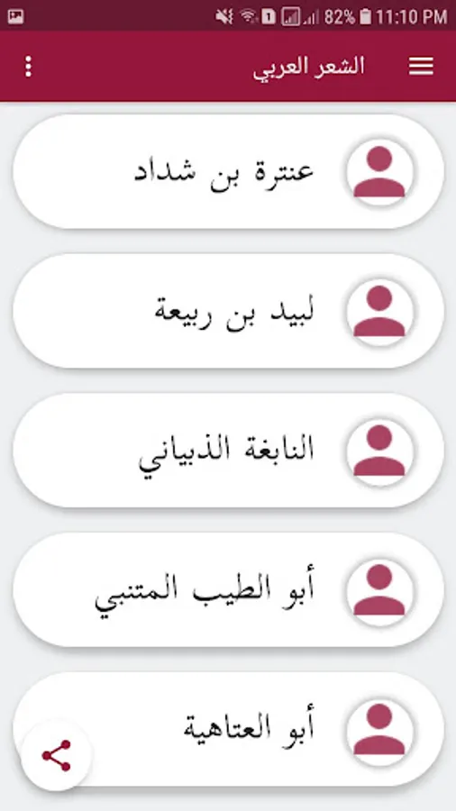 All Arab poets and poets, from the pre-Islamic era, to the ages that followed, to modern poetry, which will give readers a clear view of poetic developments and style, and the changes that have occurred in the vocabulary used for this day, with the aspirations of the future to create special sections with poems, ideas, and stories Vernacular. Poems are published on this application for purely educational reasons, for the purpose of information and goodwill. If legal representatives request that his poem be removed from the site, this will be done immediately.