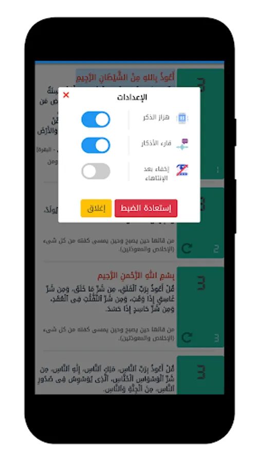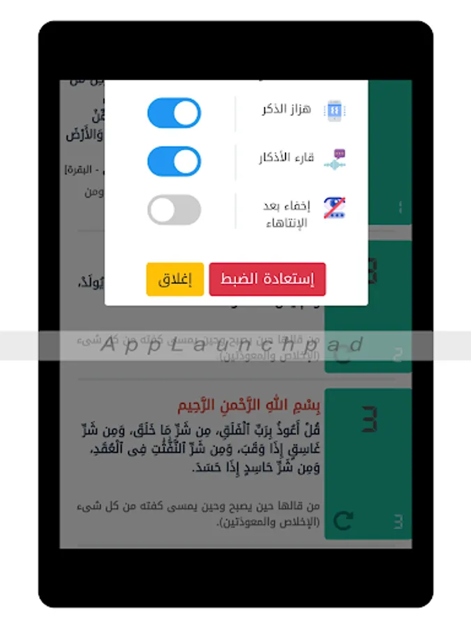 A custom color is assigned to the finished dhikr, with the ability to enable the option to hide the finished dhikr