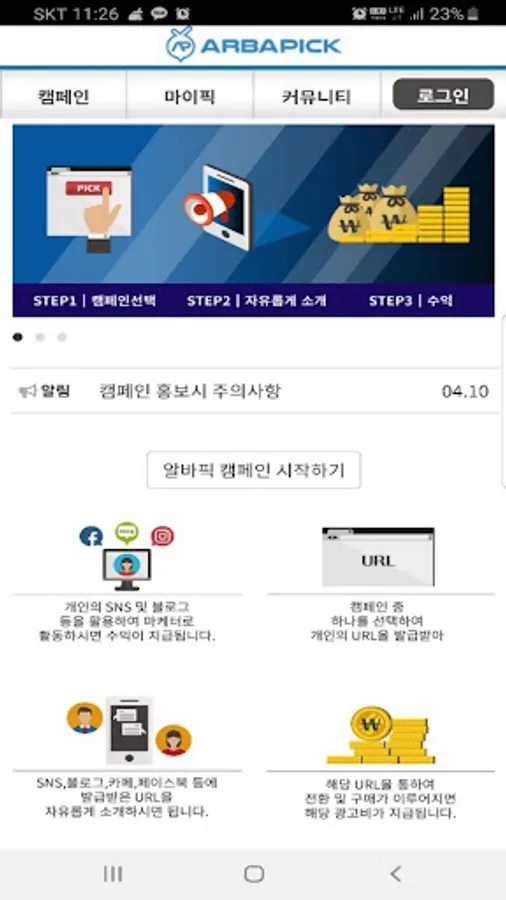 Select one of the campaigns to receive your personal URL and send it to social media, blogs, cafes, etc.