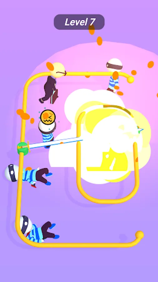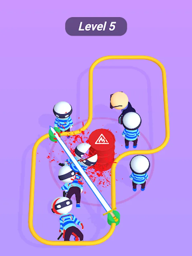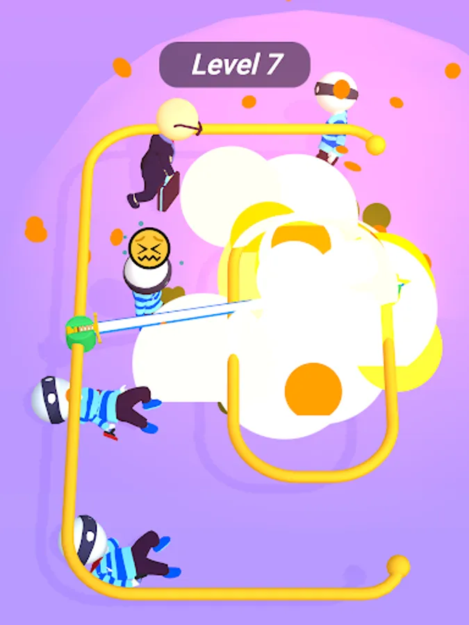 This is a very interesting puzzle game. What you need to do is sliding your rope, use a rope to cut the enemy and detonate items. But don't harm hostages.