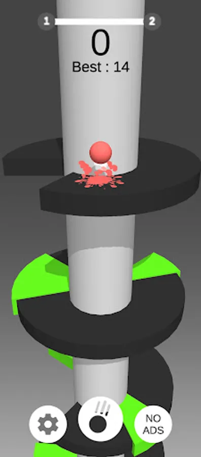Press and hold on the screen and let the ball go down without touching the obstacles! Hold as long as possible to make combo and break the black blocks. Let the ball fall down from the helix stacks.