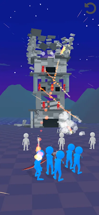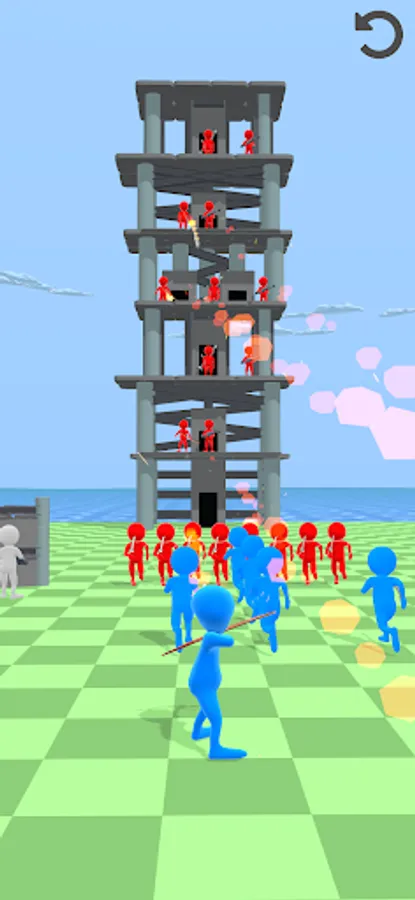 Stack the army and crash the tower. Use weapons like firearrows, snipers, rpg and swords to beat the enemy and Win!