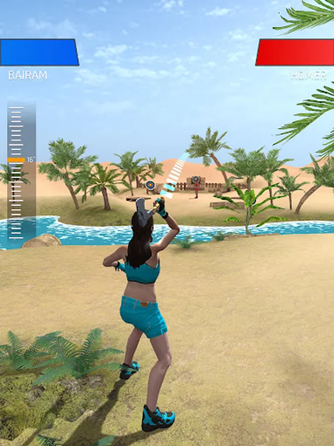 Various types of weapons are provided here: bows, spears, axes. Your task will be to make a precise shot at the enemy in order to eliminate him. The survivor goes further and receives a reward.