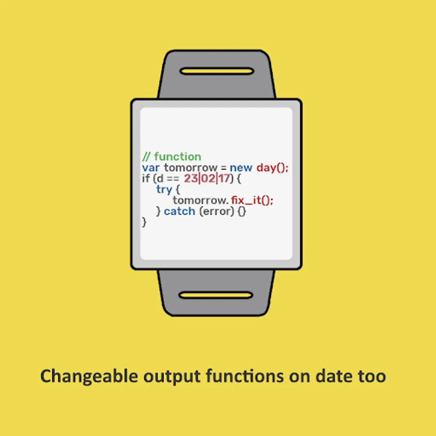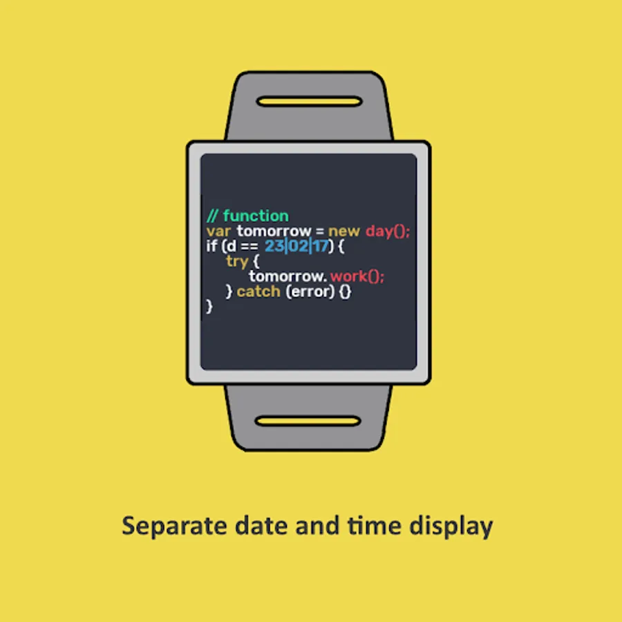 This Is A JavaScript Code Style Watch Face For Your Android Wear Device.