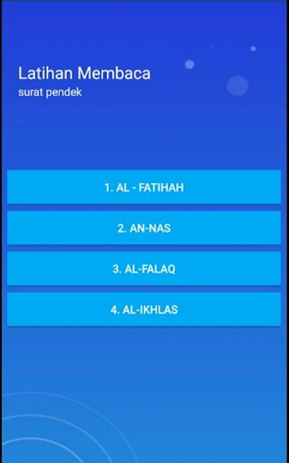 Al-Qur'an Learning Application is an application that is useful for learning how to read verses of the Qur'an. With a simple appearance, it is expected that users can be comfortable and linger in this application.