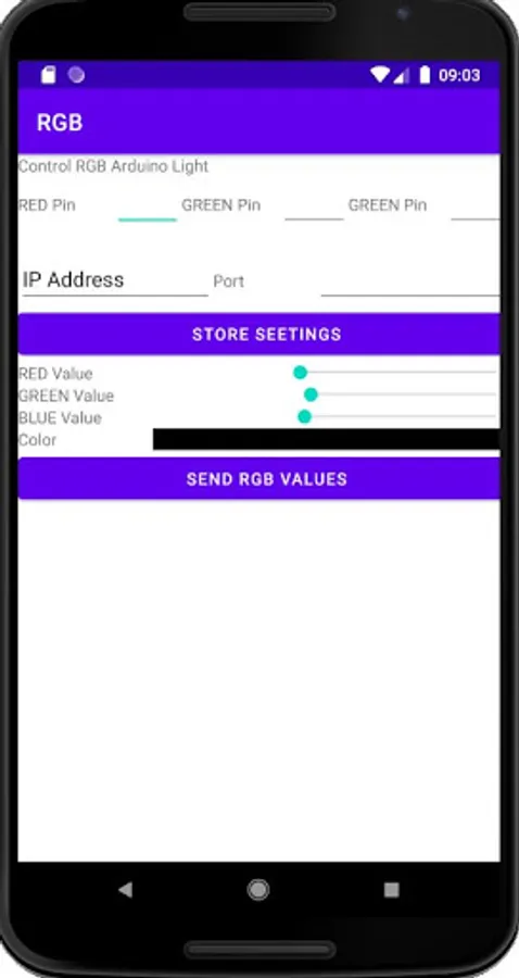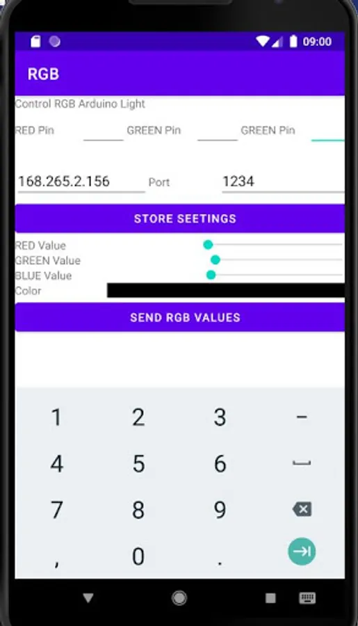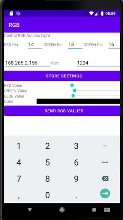 Can only send values in R format: 128 G: 250 B: 156 (color: price) if the pins are not filled in, if given then the message has the following format R (12): 128 G (15): 250 B (16): 156 (color (pin on arduino): price)