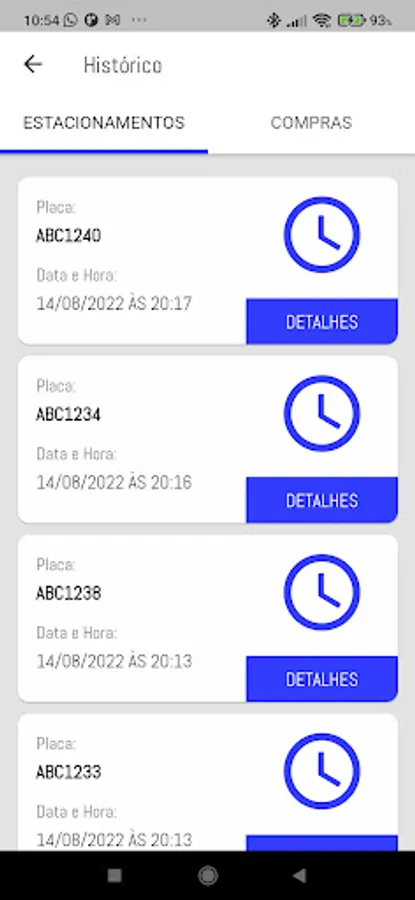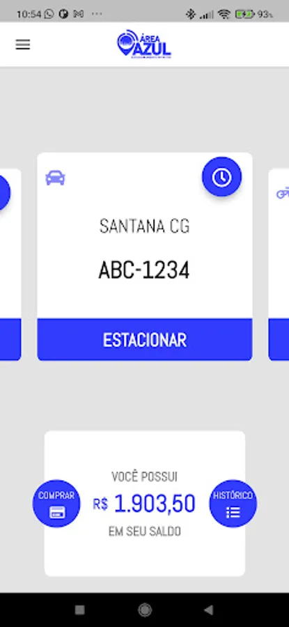 The APP is easy to use, as it is enough to register the user, register vehicles and purchase credits using a credit card. It is possible to register up to five vehicles, thus being able to be used in an optimized and controlled way. It is also possible, through the app, to control your balance, usage history and credit purchase history.