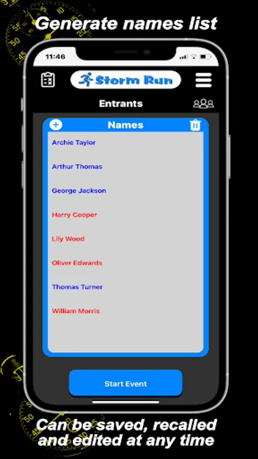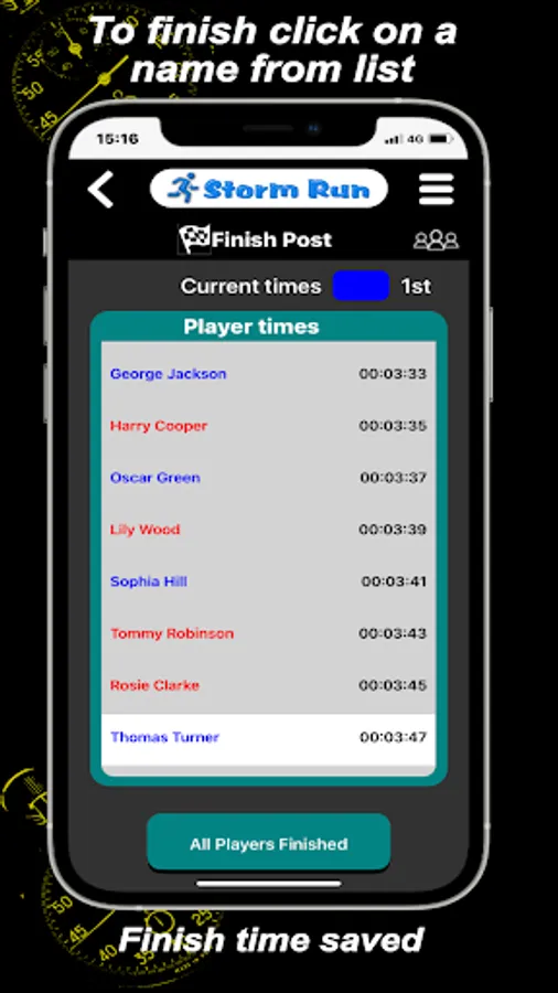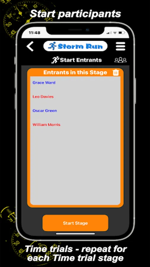 StormRun is a simple to use timekeeper App for any sport - ideal for any timing application involving more than one participant. It is particularly suited for time trial events by allowing any number of participants to start together in each heat.