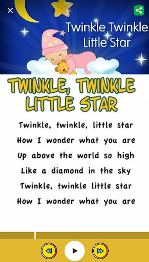 Kids love listening to the nursery rhymes free rendered in popular tunes. This app helps the kids to listen and learn nursery rhymes. The colorful flashcards and lyrics for each cartoon songs can keep your toddler entertained anywhere anytime and improve kids learning skills in early age... Enjoy the Famous kid's songs. Improve the English of your kids by preschool rhymes. Our app having favorite baby sleeping songs and Lullabies.