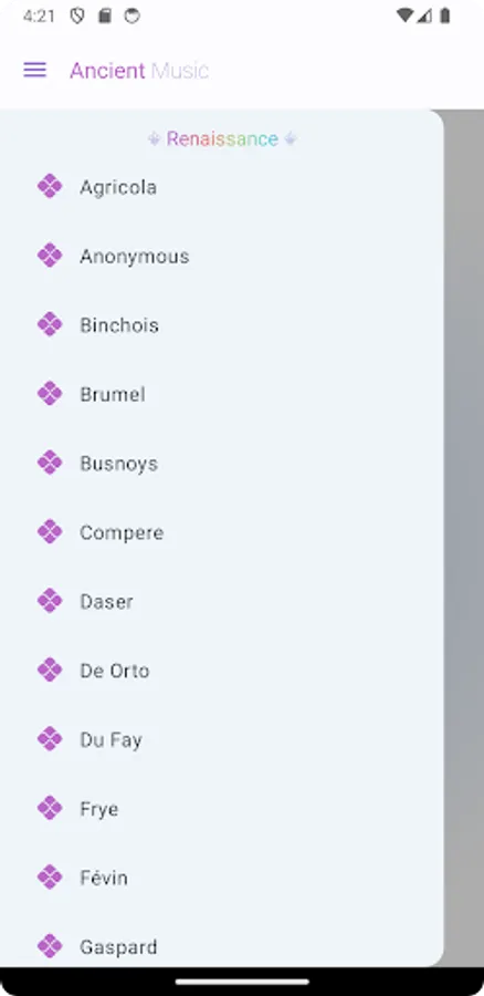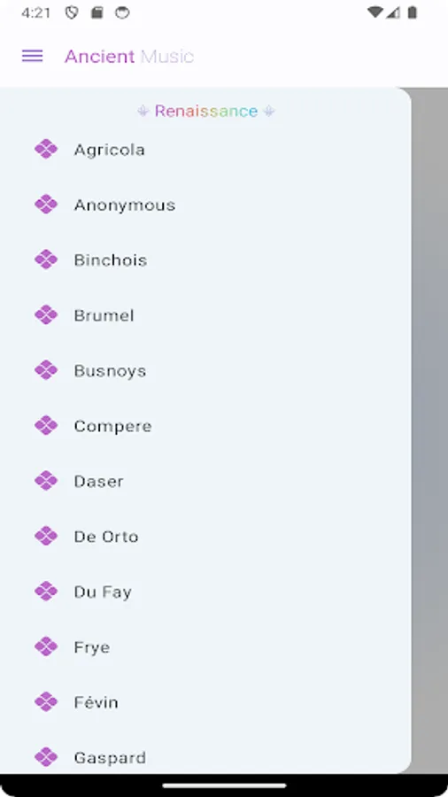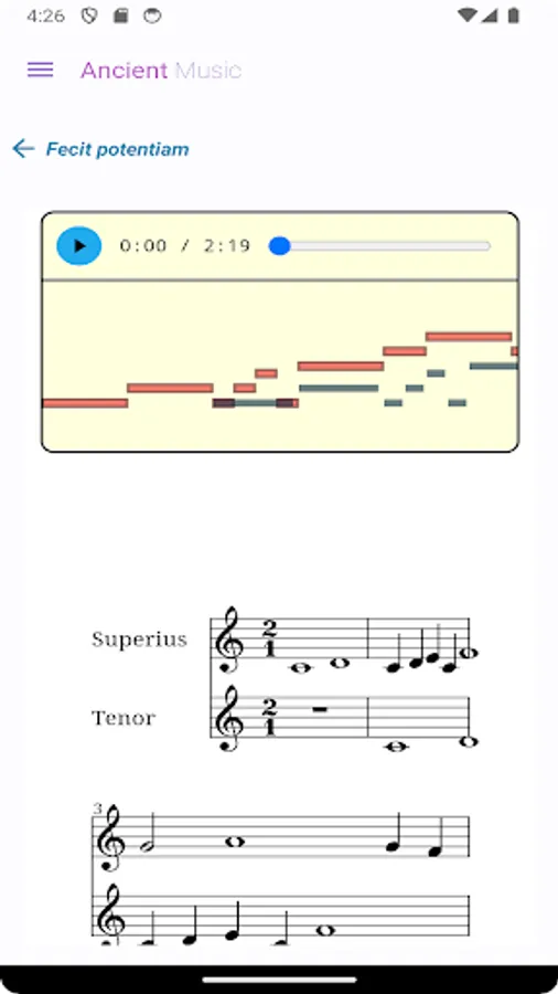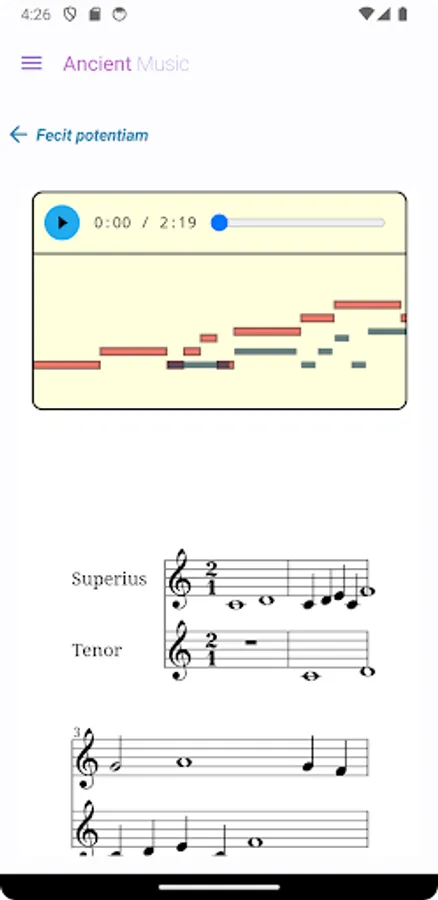 Instantly access a massive collection of music from the Renaissance era and before. Ancient Music gathers thousands of exceptional compositions from the best composers of the Renaissance period. We took the time to collect, reorganize and convert in different formats the works of great composer such as Josquin des Prez, Johannes Ockeghem, Guillaume DuFay, Pierre de la Rue, Alexander Agricola, Gilles Binchois and many others. Here are the key properties of this application: