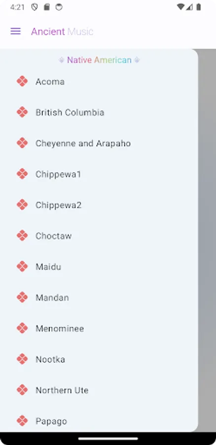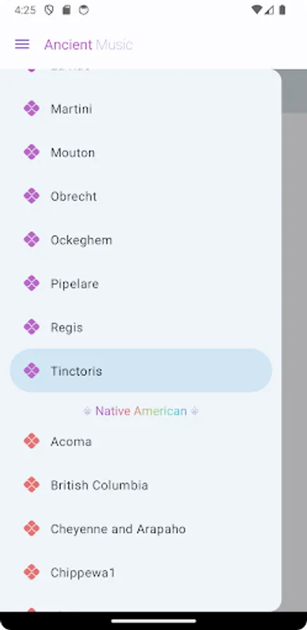 Access Music from the Renaissance period and also Folk Music (Native American Folk songs).