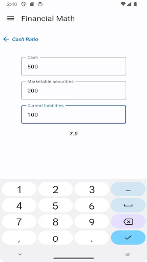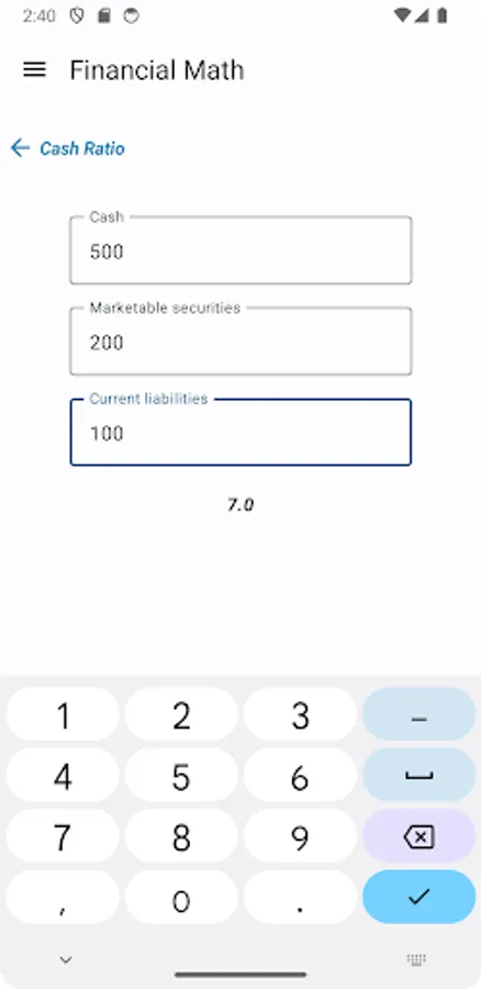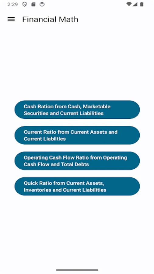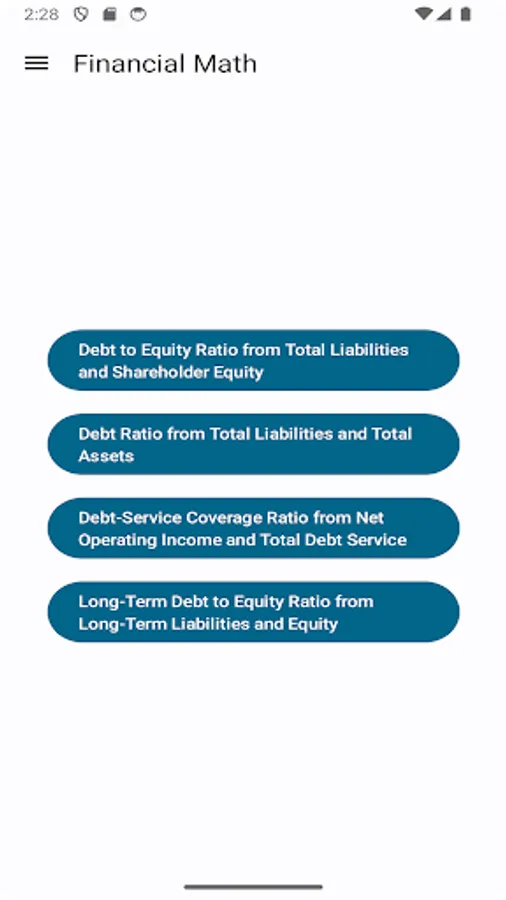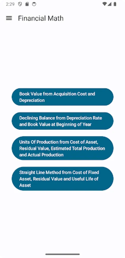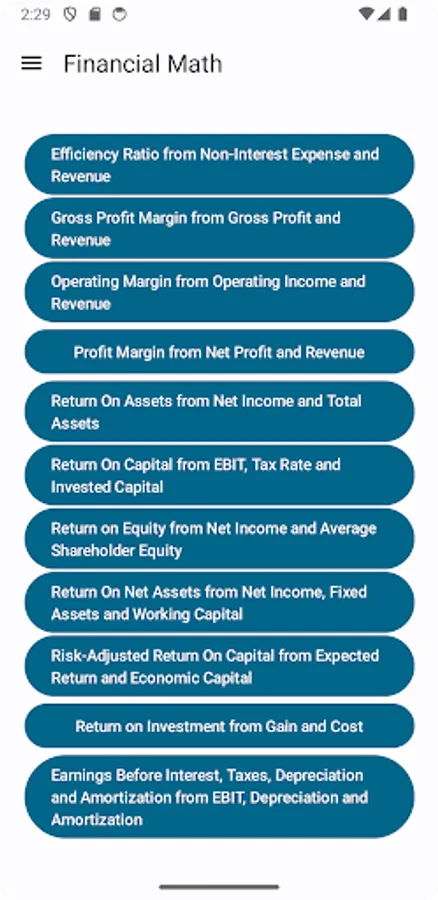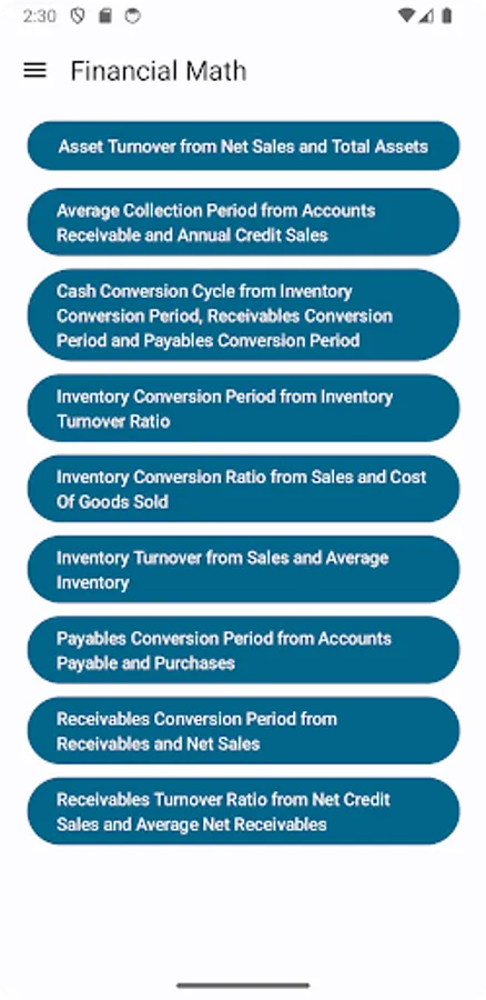 Half a hundred financial formulas are provided to you by the Financial Math application. It covers, among other things, calculations related to debt, activity, profitability, depreciation, liquidity, and Market. Here are the detailed calculus covered: