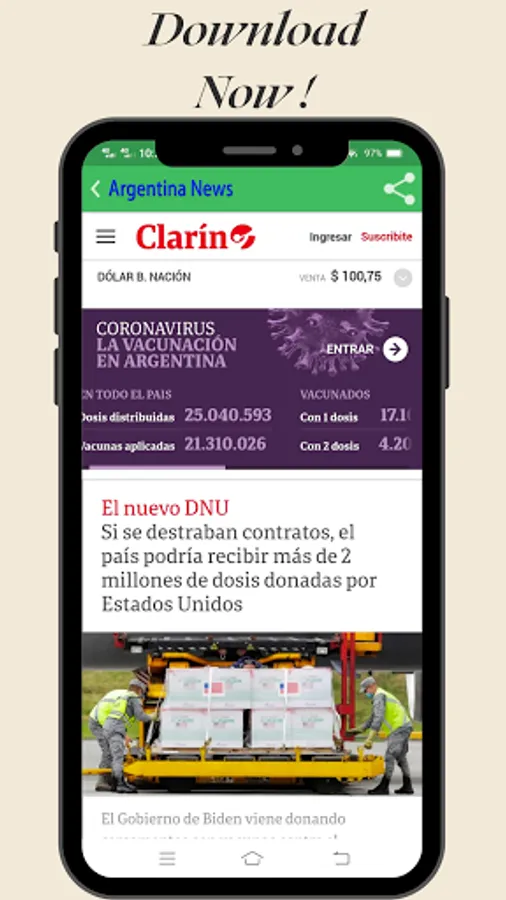 Argentina Newspapers is an application that groups all news of the most important newspapers and magazines of Argentina. With this application, you can have in one place, all the information you want without browse individual websites of each newspaper or magazine.