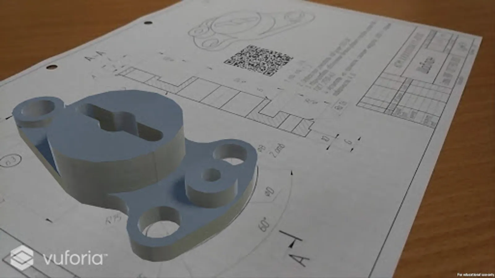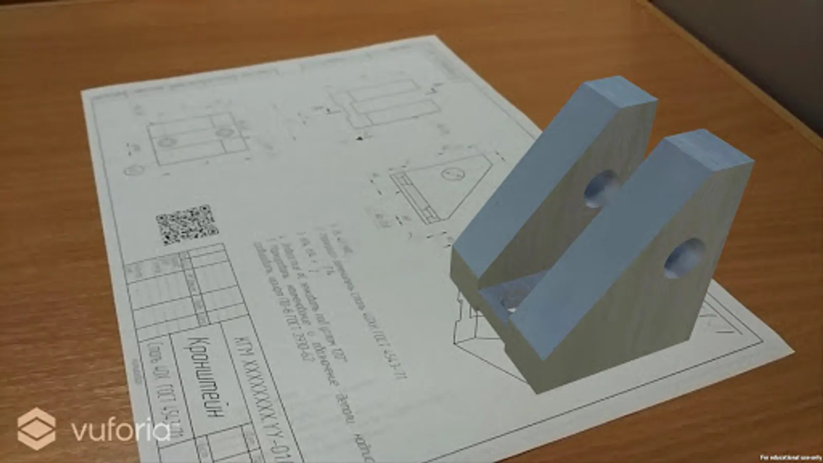 Demonstrating the difference between 2D and 3D objects using augmented reality technology in the context of the study subjects "Descriptive Geometry", "Engineering Graphics", "Computer Graphics in engineering." When you camera to 2D drawings on the drawing appears on the 3D model. The rotation of the drawing on the desktop allows you to view a 3D model from all sides.