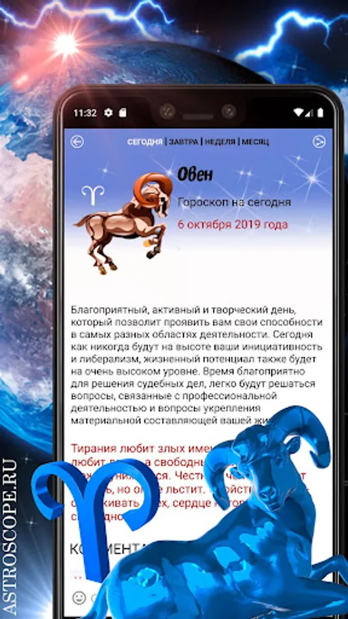 ARIES The horoscope for today, tomorrow and every day has additional functionality - a video horoscope, which Aries will surely like, for whose delicate nature audiovisualization is especially important. Also, by downloading the horoscope, each Aries gets the opportunity to install an application widget on the home screen of their device, as well as colorful wallpapers, a screensaver with the theme of your zodiac sign for the smartphone screen. Let the image of Aries become a good luck charm for you.
