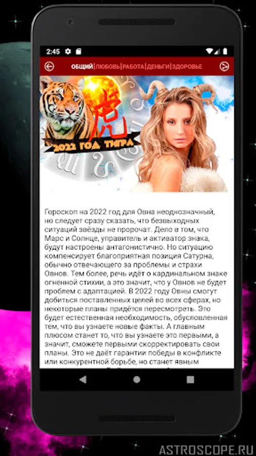 Among other things, the application for the sign of Aries also contains an annual forecast for representatives of this zodiac sign. The horoscope 2022 Aries has been compiled for you in order to warn against wrong steps and movement in the wrong direction. A year is enough time for each of the persistent, selfless Aries to achieve significant success, and we hope our recommendations will help you with this.