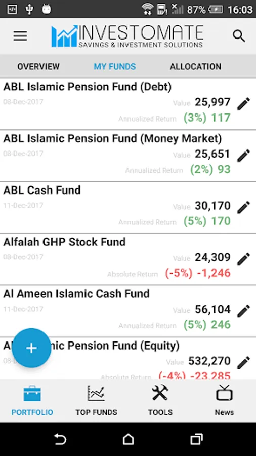 InvestoMate is Pakistan’s First and Only Mobile App for managing all of your investments in Mutual Funds and Voluntary Pension Schemes (VPS) in one place. Whether you’re an existing investor or getting ready to invest, InvestoMate provides you the financial information, analysis and tools you need anytime and anywhere.