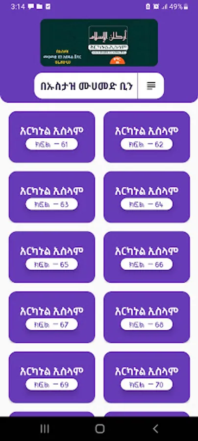 ይህ የሞባይል መተግበሪያ የአርካኑል ኢስላም ደርስ በኡስታዝ ሙሀመድ ቢን አብዱል ጀባር (خليك)ሀፊዘሁሏህ የተሰጠውን ትምህርት(ደርስ) ለአጠቃቀም ምቹ በሆነ መንገድ ከ 61–130 ያለውን ክፍል አጠቃሎ የያዘ መተግበሪያ ነው።