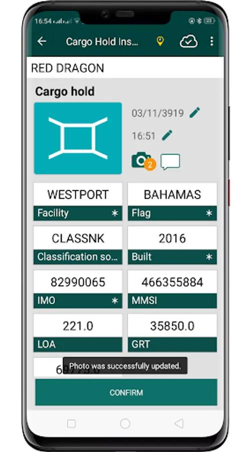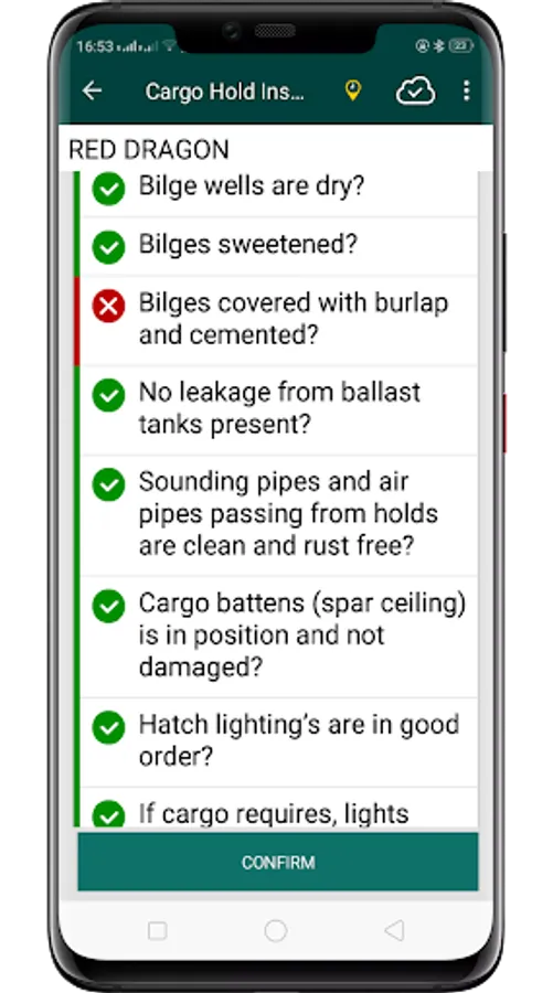 Record result of cargo hold inspection in real time onboard. Loggings sync’ed to the cloud, and accessible online. Time distribution statistics and live monitoring always available from the cloud.
