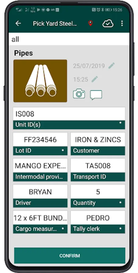 Record tally yard location for steel breakbulk and pick/drop activity in real time from yard. Loggings sync’ed to the cloud, and accessible online. Application features: