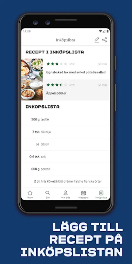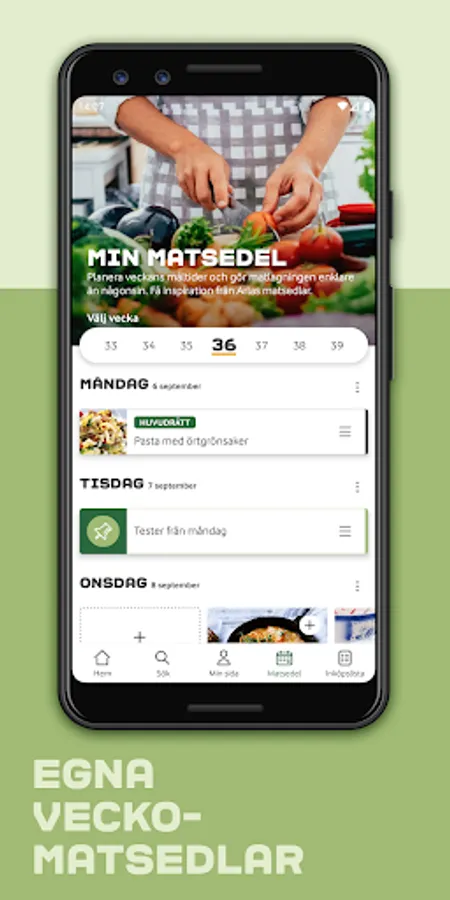 • My Menu - get inspiration from the meal plans for Arla Mat or make your own meal plan, where you can easily add favorite recipes and your own notes, how the plan is tailored to your needs
