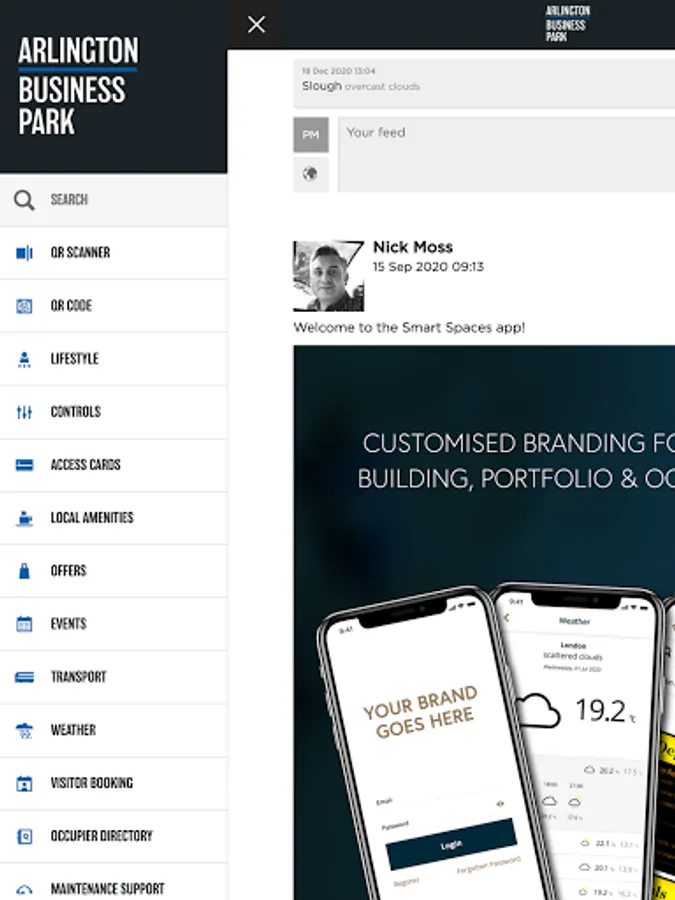 Arlington Business Park keeps you in touch with your colleagues and working community. Access to social features through a scrollable “Social Wall” keeps you up to date with your colleagues, while in-app messaging is available from the “Chat” section. Occupants can look at real-time local events, amenities and offers to see what’s going on outside of the office.