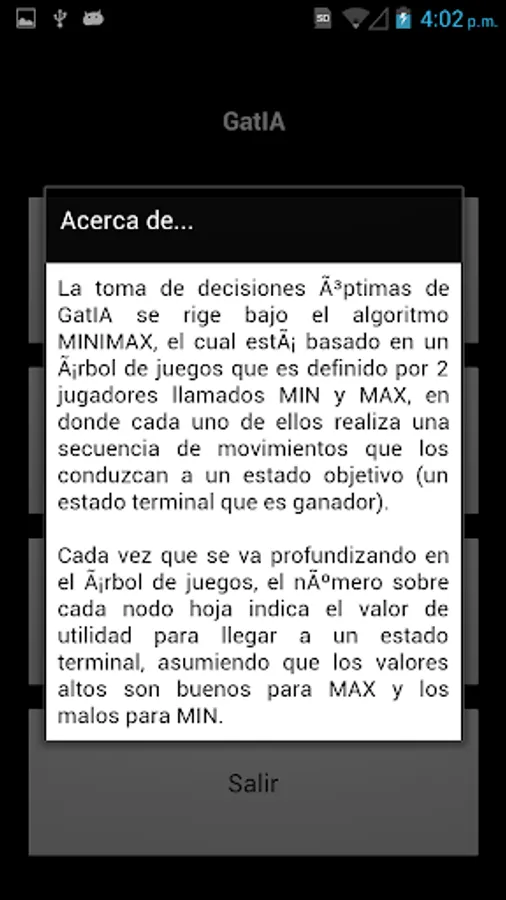 GatIA opponent has you as a very intelligent cat, which has artificial intelligence based algorithm MINIMAX, algorithm that helps you create strategies to beat any opponent who wants to face.