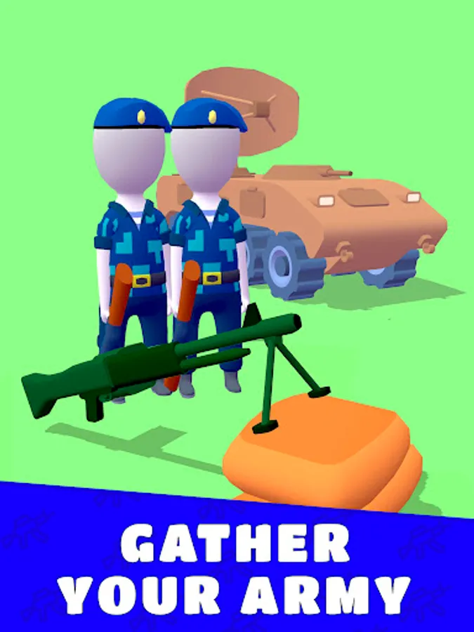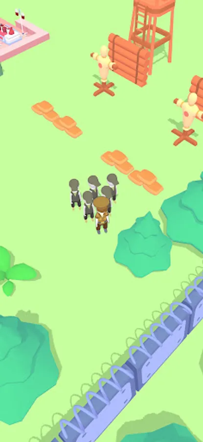 Only the best fighters train here. Gather your own crowd and send it into battle. Go through all the stages from the selection of a uniform to the future specialization of a fighter. Upgrade your camp and quickly form squads to defeat the enemy!