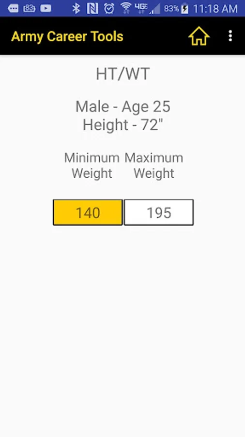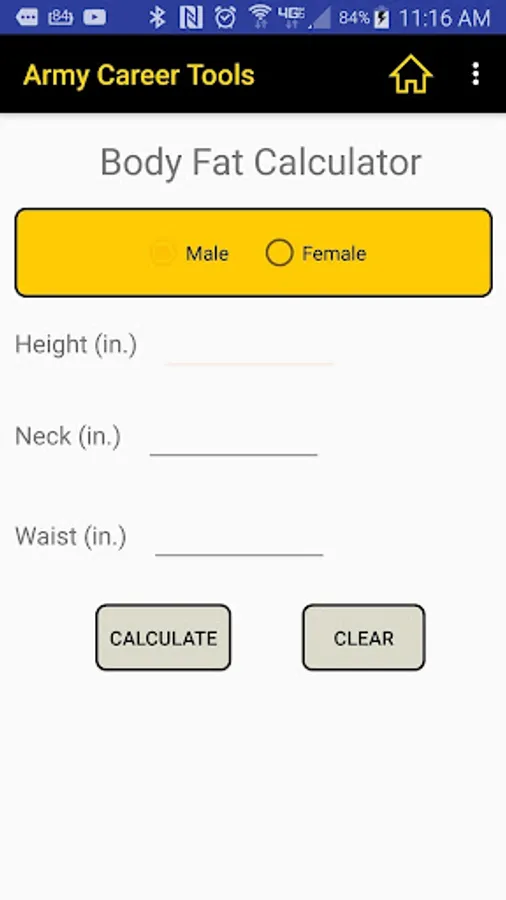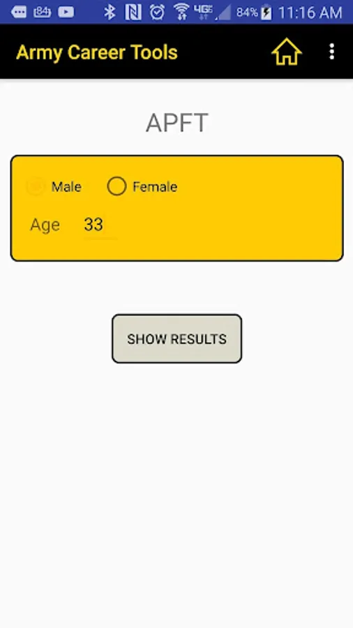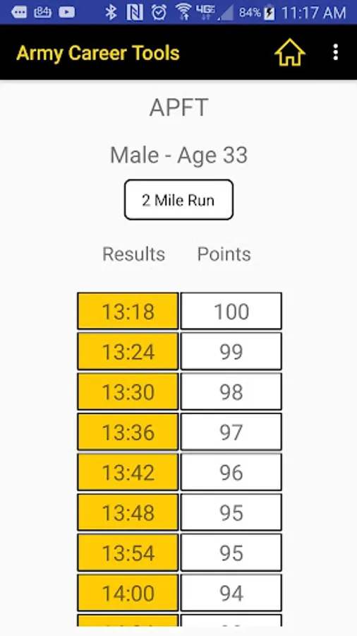 On our APFT screen simply enter the gender and age and see easy-to-read charts for situps, pushups, and the 2 mile run.