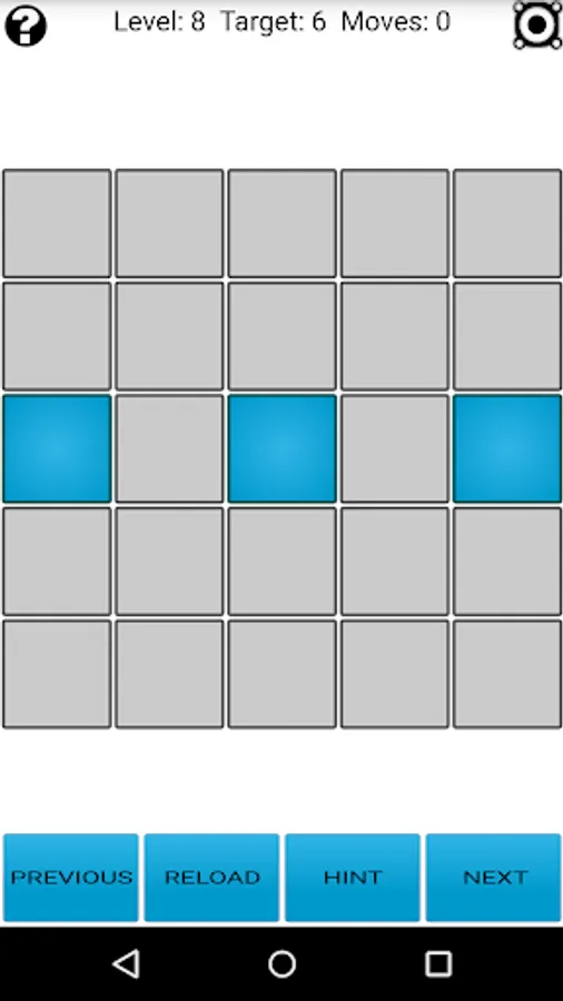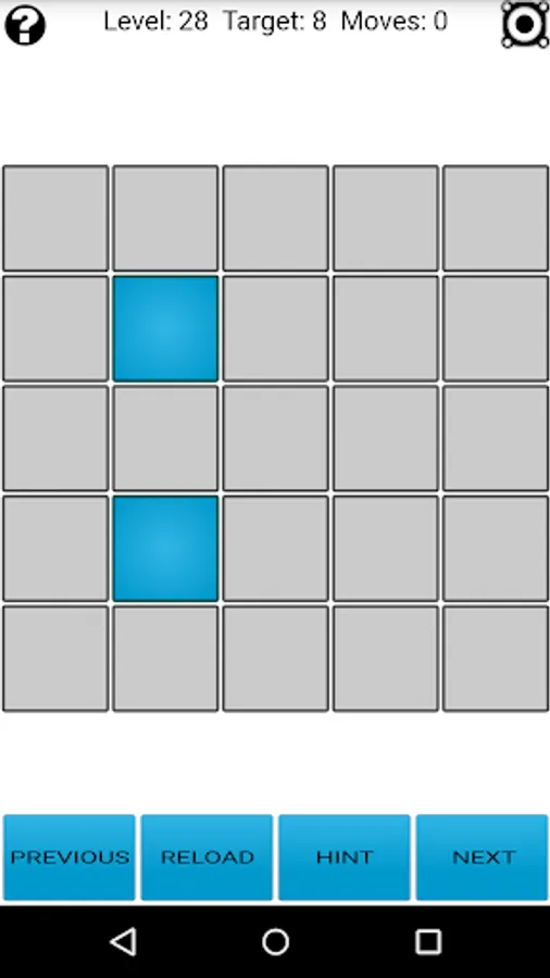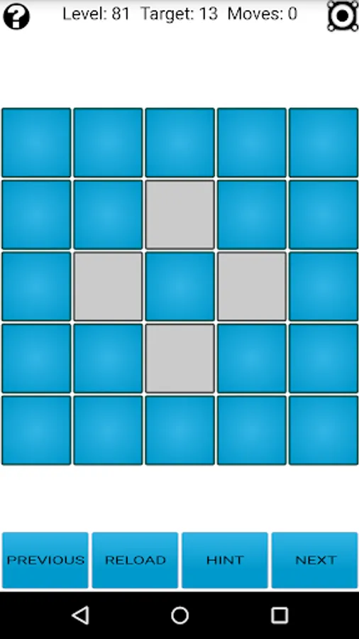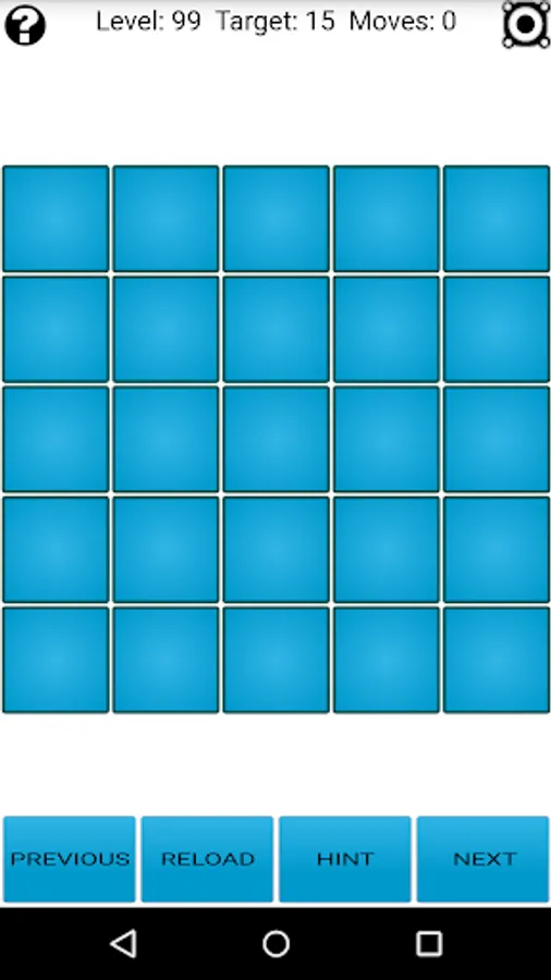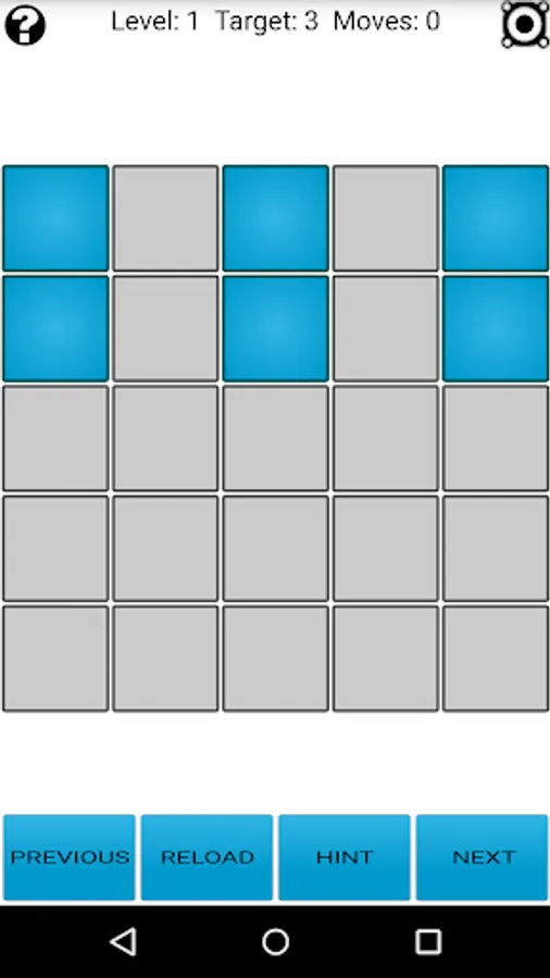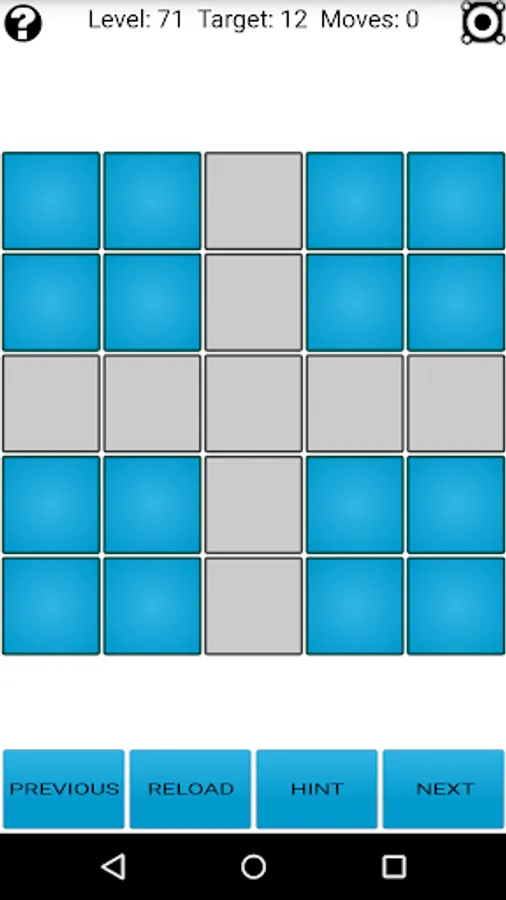 New feature! There is a solver included within the app which allows you to solve any Lights Out! configuration (and also create custom puzzles). Check at the bottom of the help screen for more information.