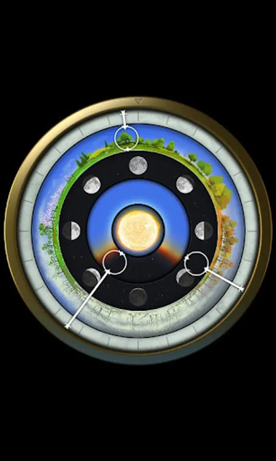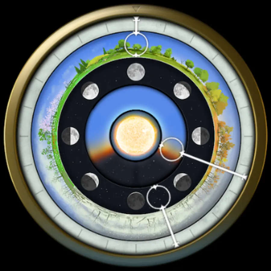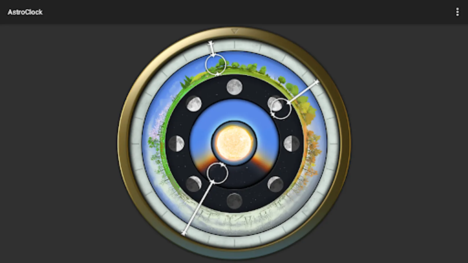 AstroClock visualizes time according to three consistent natural cycles i.e. day, moon and season.