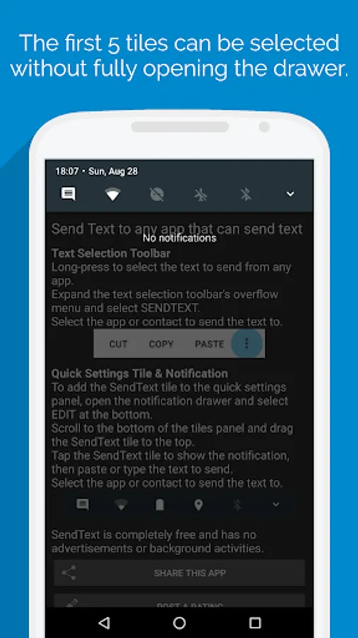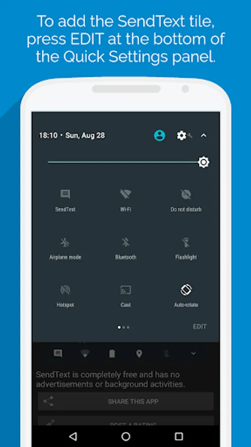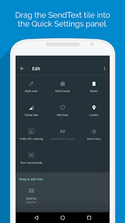 Add the SendText tile to your Quick Settings ** to send text without even leaving the app you're in.