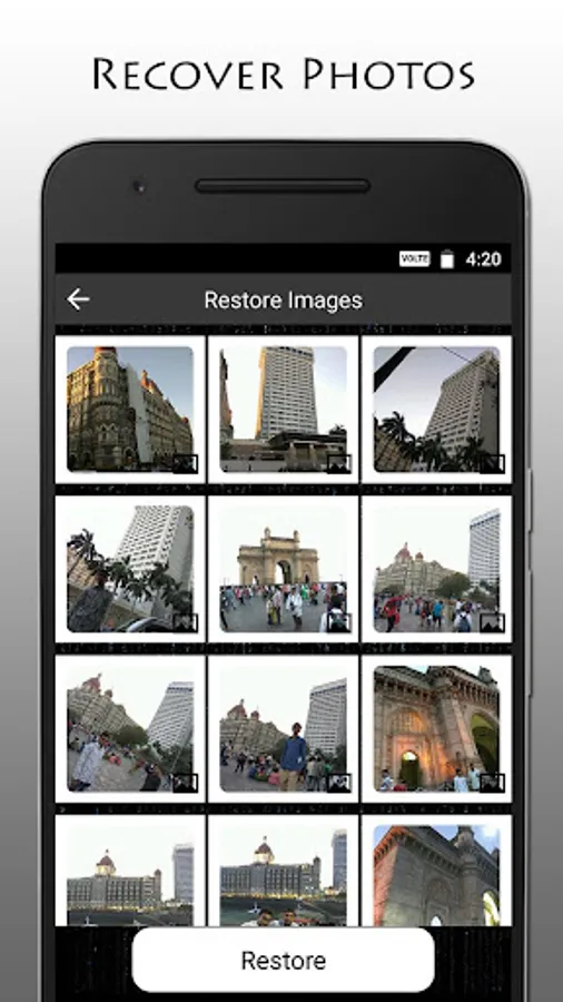 - To recover any file just select respective file from the list and click on restore button to save it into sdCard
