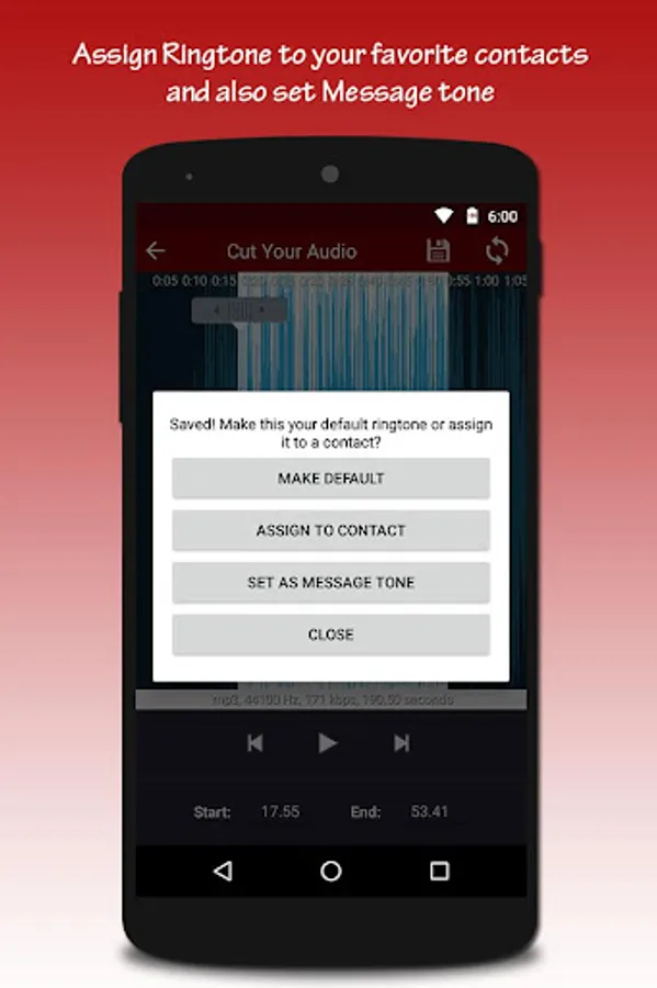 Ringtone Splitter - Ringtone Maker helps users to create Ringtone from the songs and use it as caller Ringtone and SMS tones.