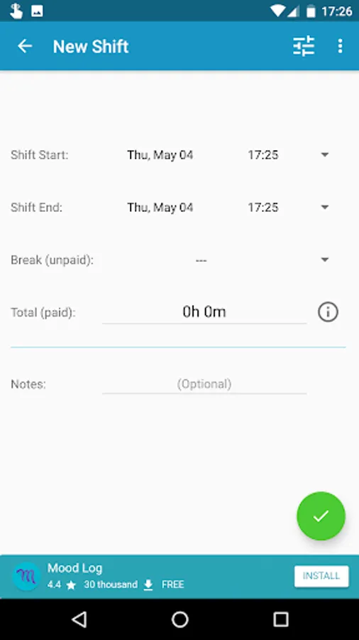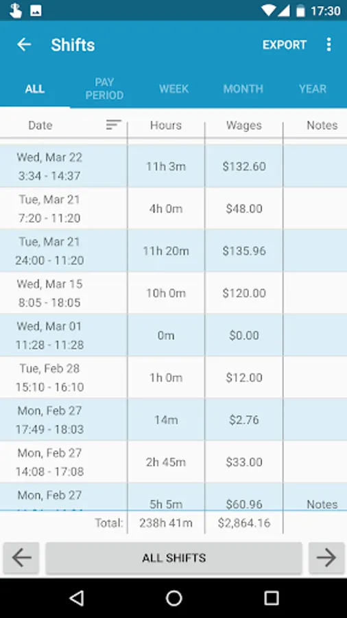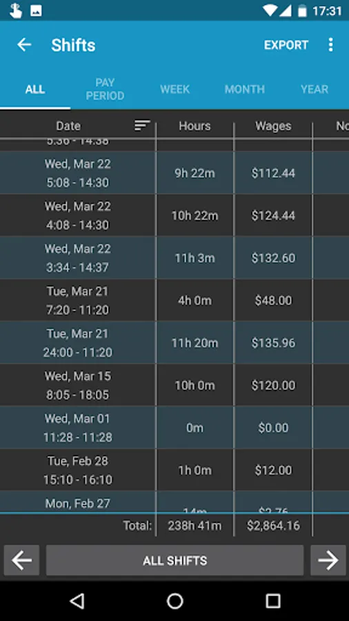 Work Log is a quick, easy and free way to keep track of your shifts and calculate the number of hours worked and wages paid over your pay period.