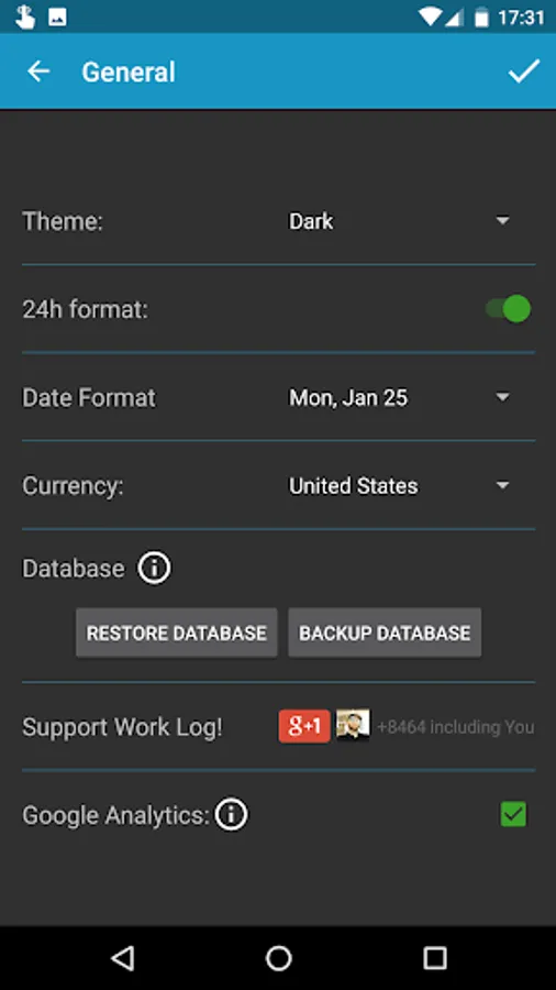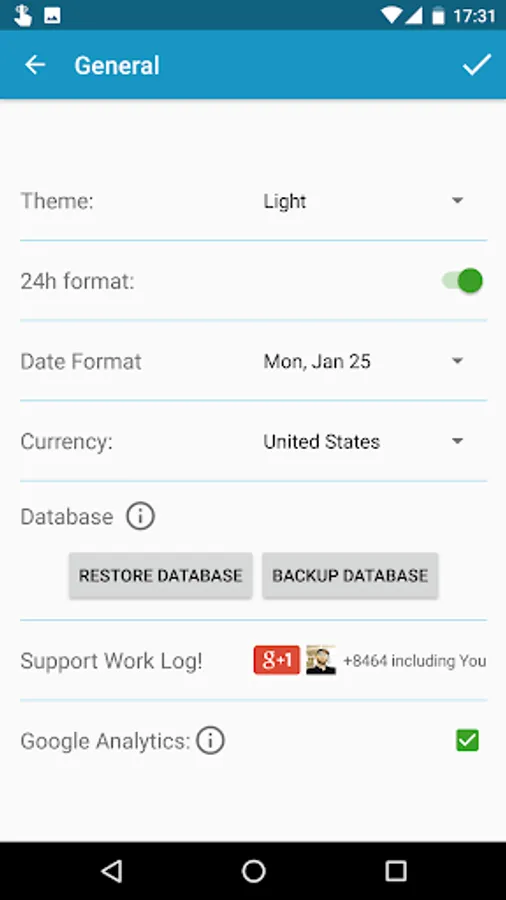 ★ Customize how Work Log looks with options like date and time formatting, when your week starts and a light or dark theme