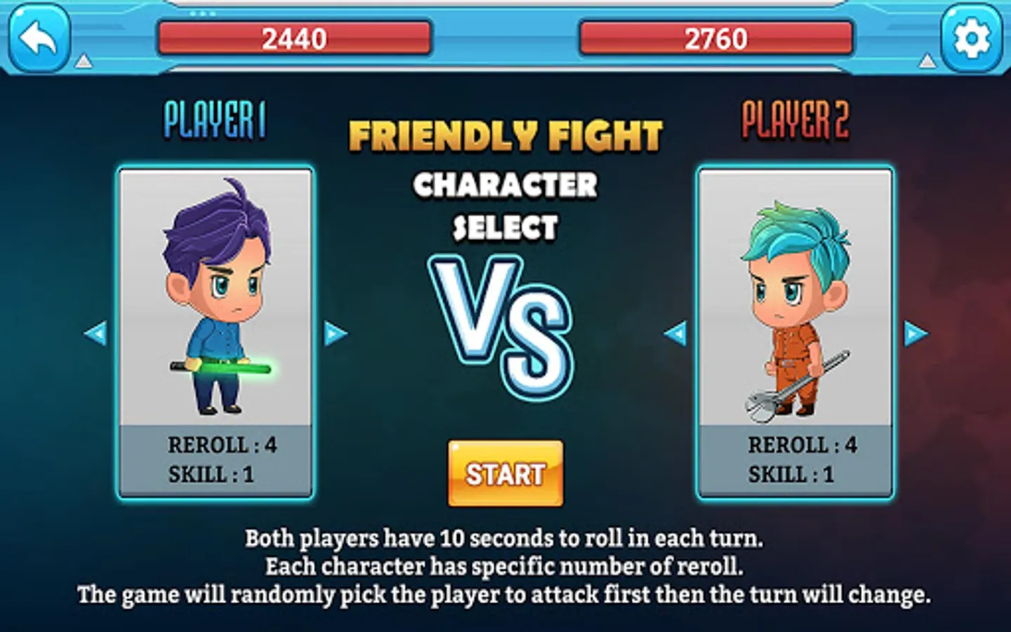 Player will fight against friends on only device.