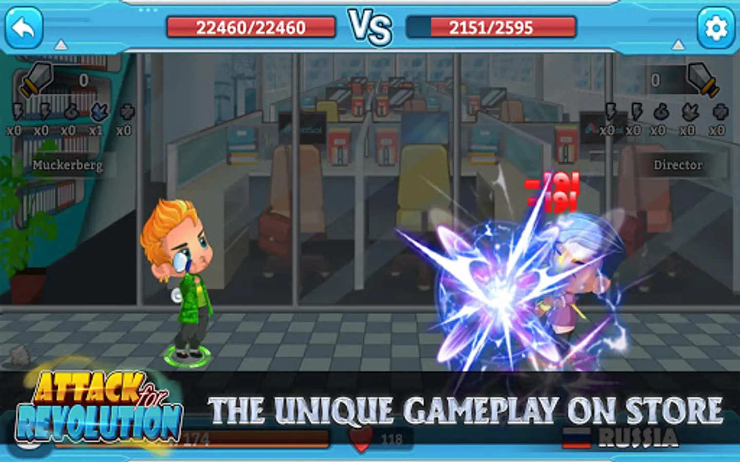 The action role playing game with Unique Story-line: In the world, some bosses build their empire by exploiting their workers. Some characters revolt with using their work tools, and take revenge on the bosses.