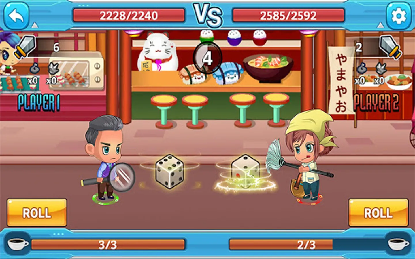 You will use dice to accumulate attack power and skills. You can roll as many times as you want.
