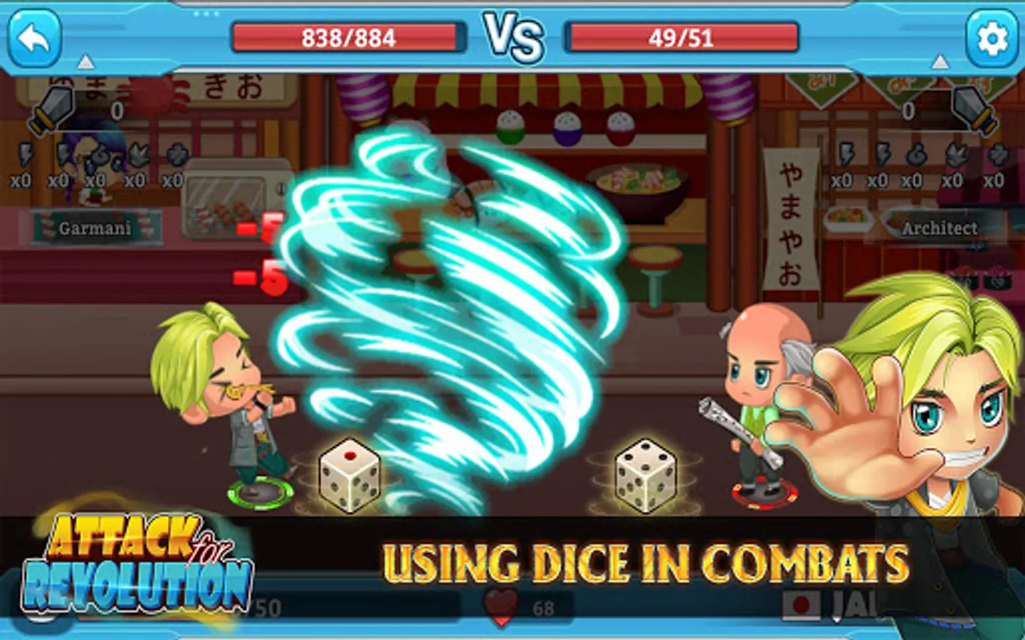 The Action RPG Game DICE MASTERS : ATTACK FOR REVOLUTION is one of the best free Action RPG games for Android. This game RPG offline has attractive and unique Game Play by using Dice for fighting. Can you become one of ace warriors, Dice Masters or Dice Mage? Dice Mage needs to calculate to have decided blow to attack and defeat rivals in combat to get glory and freedom.